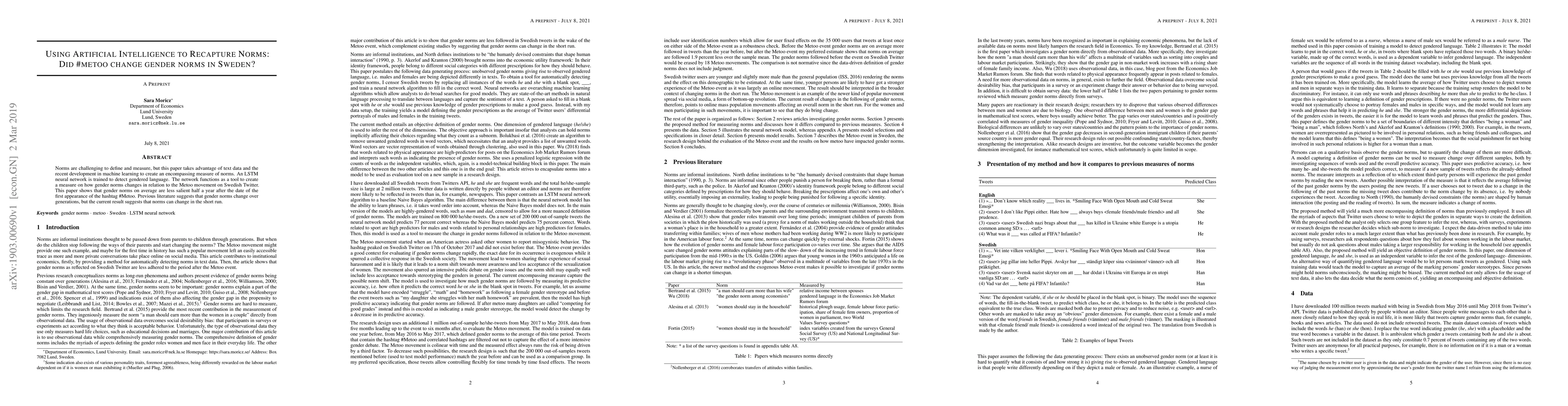 Norms are challenging to define and measure, but this paper takes advantage of text data and the recent development in machine learning to create an encompassing measure of norms. An LSTM neural network is trained to detect gendered language. The network functions as a tool to create a measure on how gender norms changes in relation to the Metoo movement on Swedish Twitter. This paper shows that gender norms on average are less salient half a year after the date of the first appearance of the hashtag #Metoo. Previous literature suggests that gender norms change over generations, but the current result suggests that norms can change in the short run.