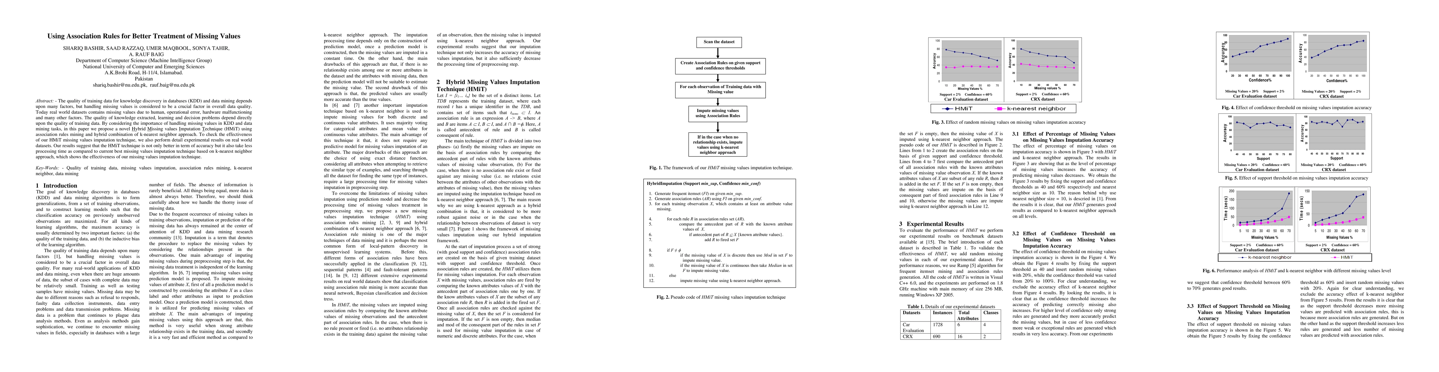 This paper proposes a novel Hybrid Missing values Imputation Technique (HMiT) using association rules and a hybrid k-nearest neighbor approach to improve the treatment of missing values in datasets. Experimental results show that HMiT is more accurate and faster than existing k-nearest neighbor-based techniques.