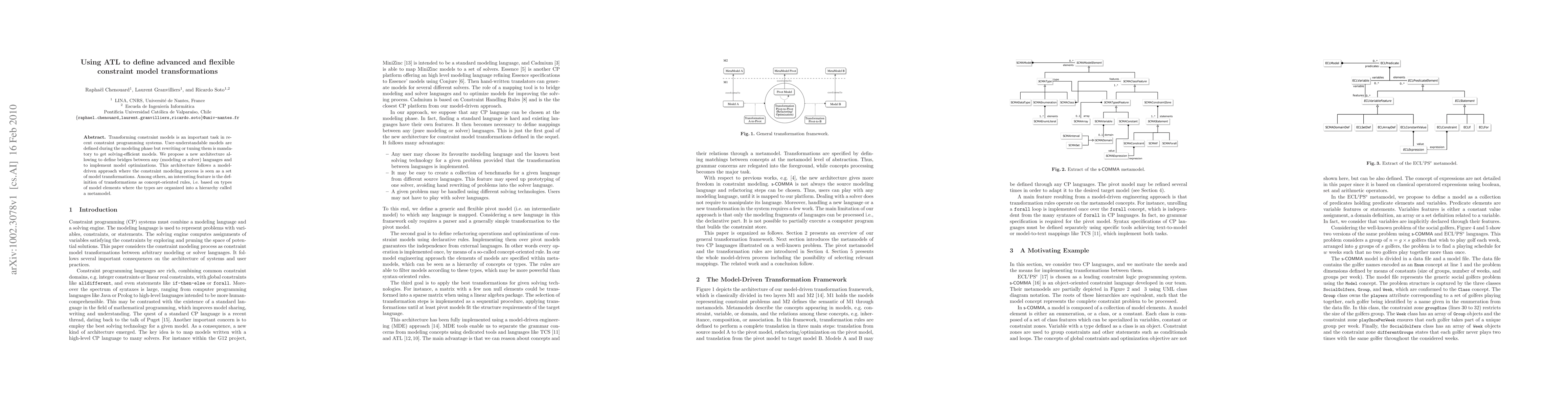 Transforming constraint models is an important task in re- cent constraint programming systems. User-understandable models are defined during the modeling phase but rewriting or tuning them is manda- tory to get solving-efficient models. We propose a new architecture al- lowing to define bridges between any (modeling or solver) languages and to implement model optimizations. This architecture follows a model- driven approach where the constraint modeling process is seen as a set of model transformations. Among others, an interesting feature is the def- inition of transformations as concept-oriented rules, i.e. based on types of model elements where the types are organized into a hierarchy called a metamodel.