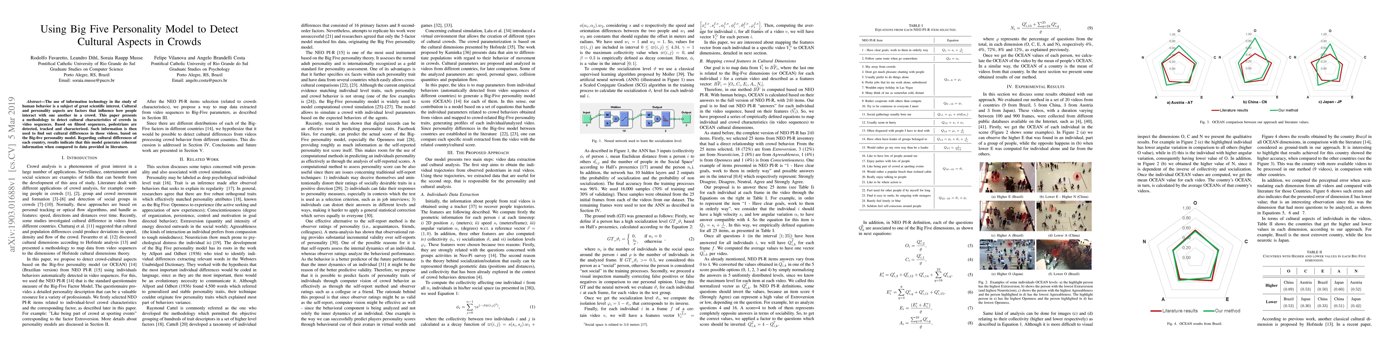 This paper proposes a methodology to detect cultural characteristics in crowds using video sequences and the Big Five Personality Model, finding that it effectively identifies cultural differences in alignment with existing literature.