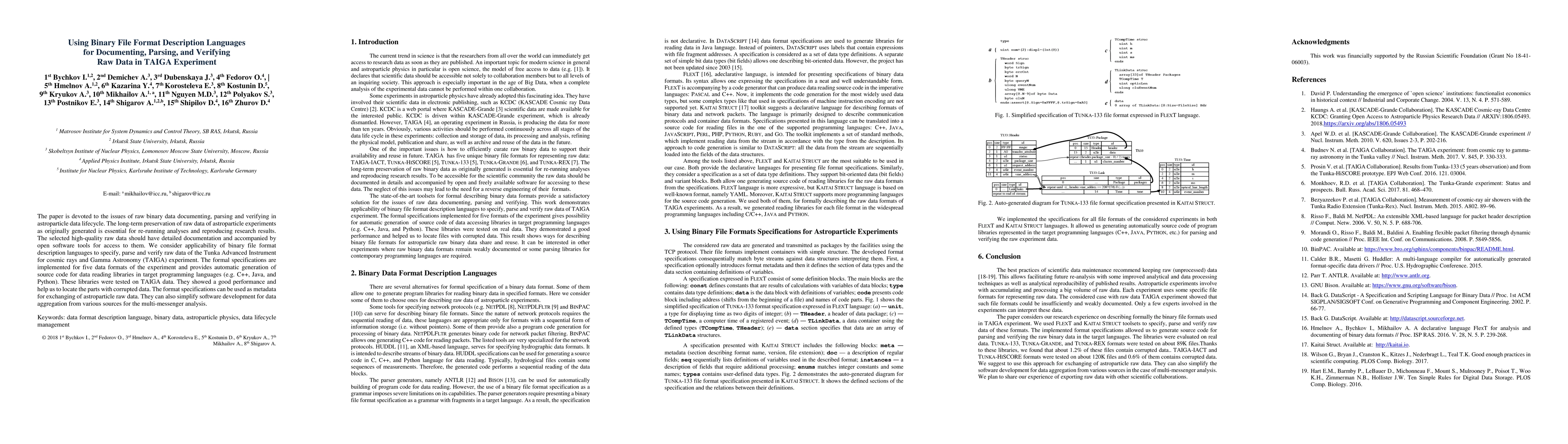 The research utilized binary file format description languages, specifically FLEXT and KAITAI STRUCT, to document, parse, and verify raw data from the TAIGA experiment's five unique binary file formats.