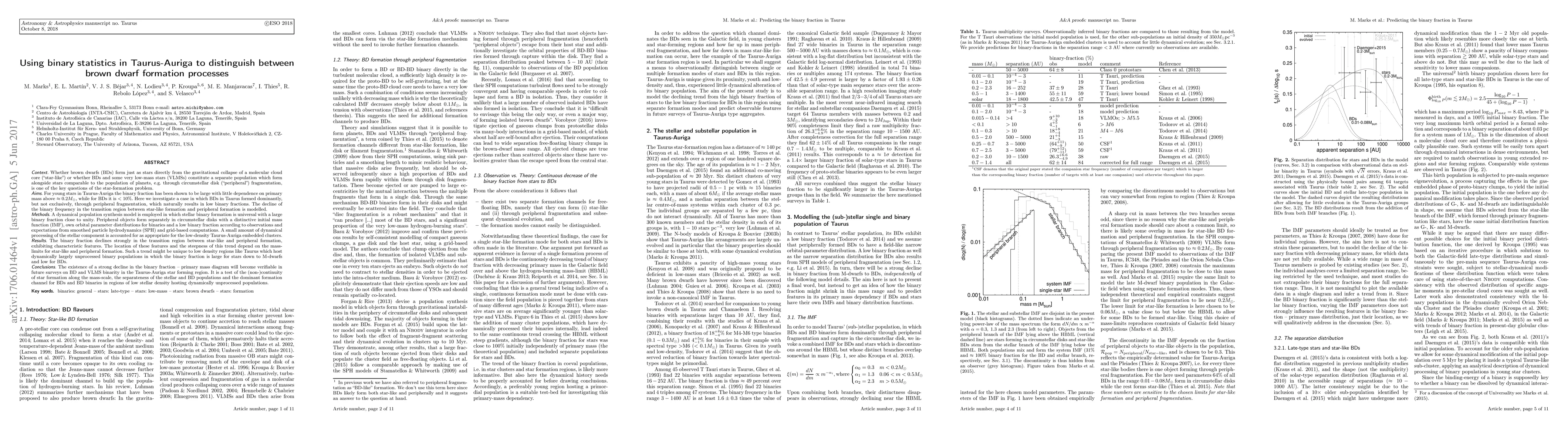 This paper investigates the binary fraction decline in Taurus-Auriga to distinguish between star-like and peripheral formation processes for brown dwarfs (BDs). It finds a strong decline in binary frequency between star-like and peripheral formation mass-limits, suggesting a unique trend in low-density regions, and proposes future surveys to verify this trend as a test of star formation continuity and BD formation channels.