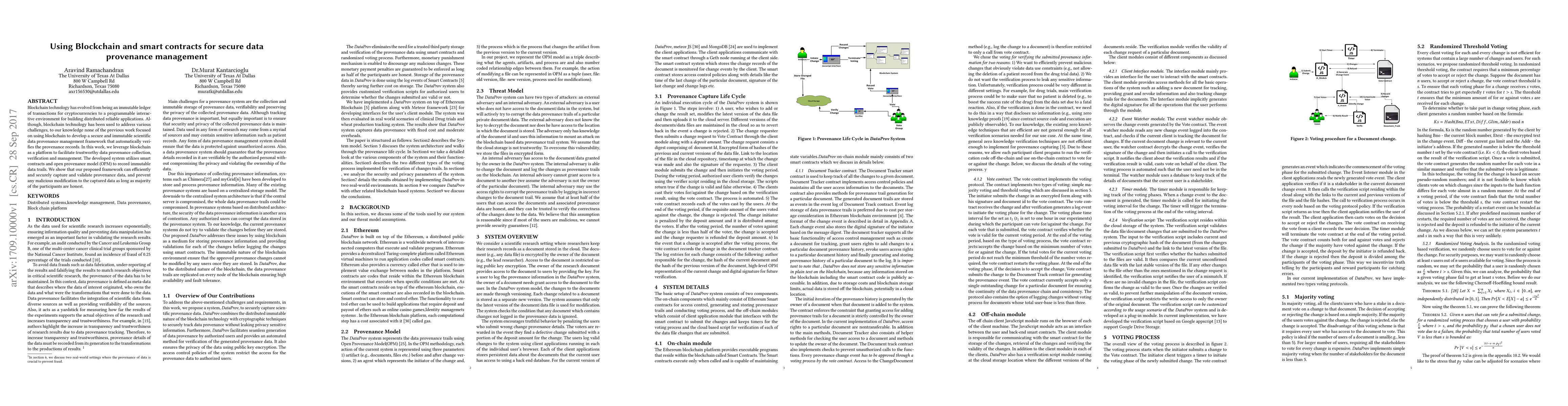 This paper proposes a blockchain-based framework for secure data provenance management using smart contracts to automatically verify provenance records. The system leverages the open provenance model (OPM) to create immutable data trails, ensuring efficient and secure capture and validation of provenance data while preventing unauthorized modifications.