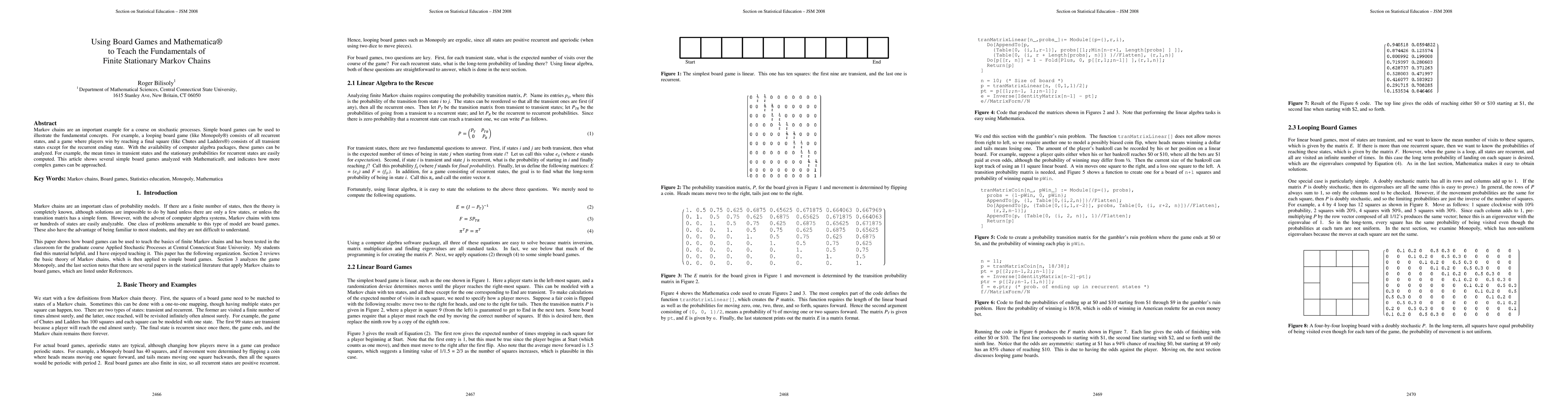 Markov chains are an important example for a course on stochastic processes because simple board games can be used to illustrate the fundamental concepts. For example, a looping board game (like Monopoly) consists of all recurrent states, and a game where players win by reaching a final square (like Chutes and Ladders) consists of all transient states except for the last one. With the availability of computer algebra packages, these games can be analyzed. For example, the mean times in transient states and the stationary probabilities for recurrent states are easily computed. This article analyzes some simple board games with Mathematica, and indicates how this can be extended to more complex situations.