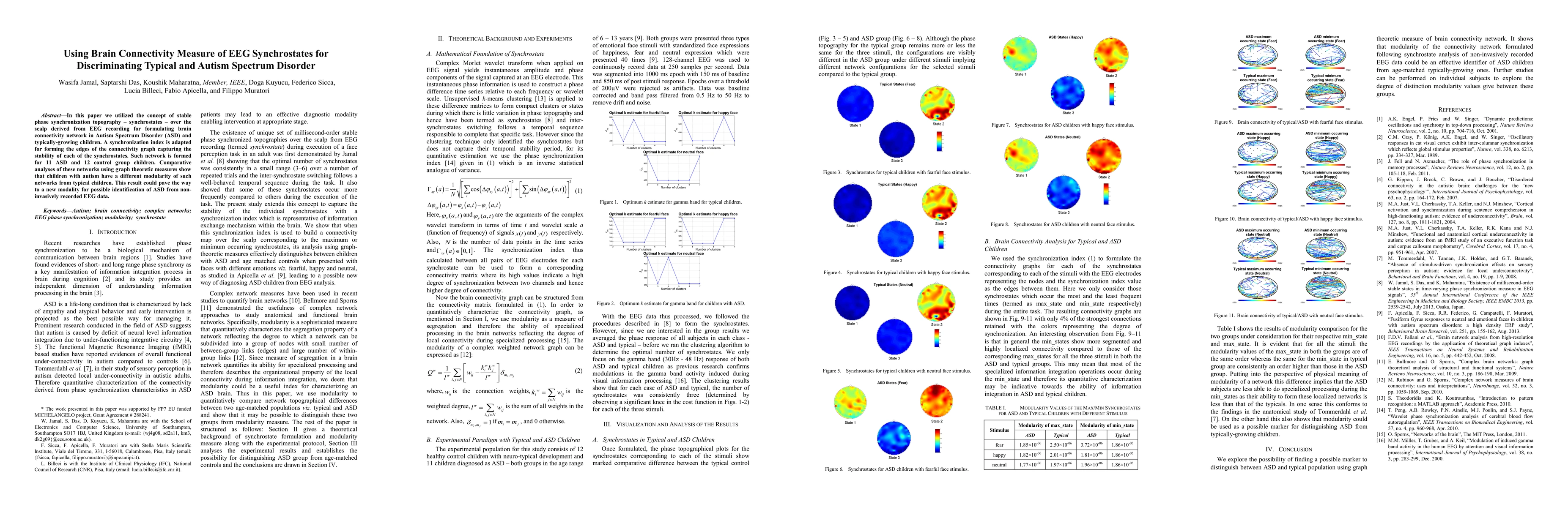This study uses EEG-derived synchrostates to create brain connectivity networks in children with Autism Spectrum Disorder (ASD) versus typically-developing children, revealing distinct modularity in the ASD group. This suggests a potential non-invasive EEG-based method for identifying ASD.