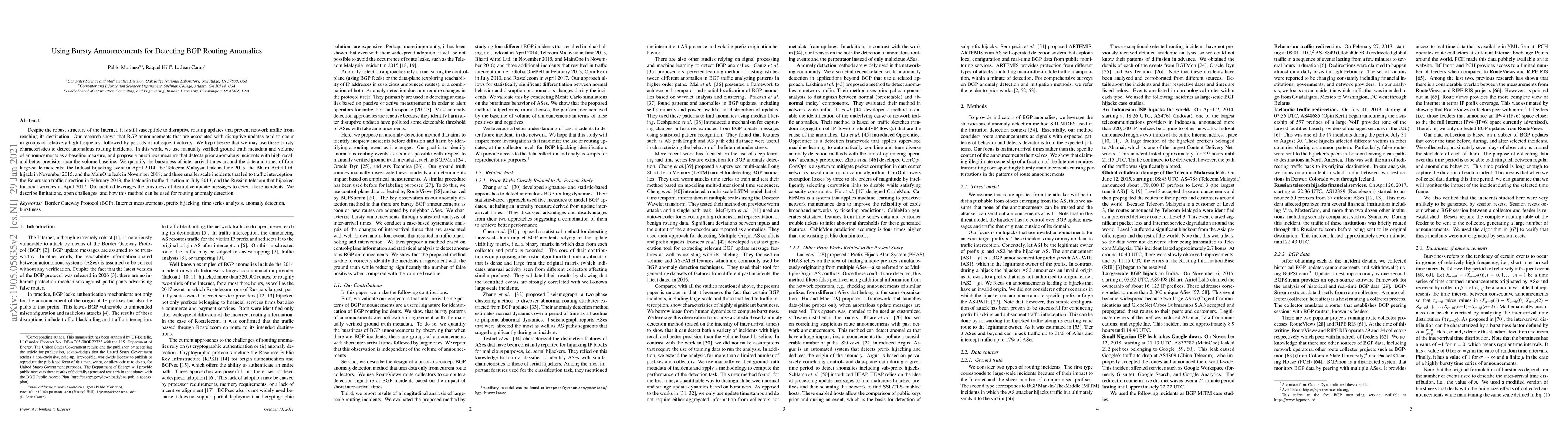 This research proposes a method to detect BGP routing anomalies by analyzing bursty patterns in routing announcements. The study shows that disruptive routing updates often occur in high-frequency bursts followed by quiet periods, and introduces a burstiness measure that outperforms traditional volume-based detection in identifying past incidents with high recall and precision.
