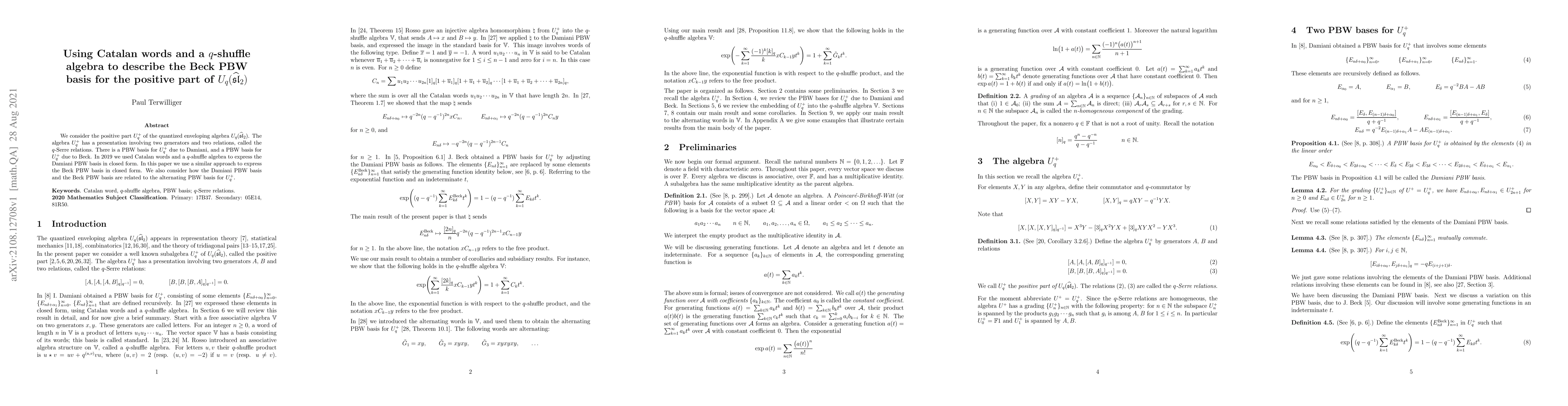 This paper explores the positive part $U^+_q$ of the quantized enveloping algebra $U_q(\widehat{\mathfrak{sl}}_2)$ and uses Catalan words and a $q$-shuffle algebra to express Beck's PBW basis in closed form, relating it to Damiani's PBW basis.