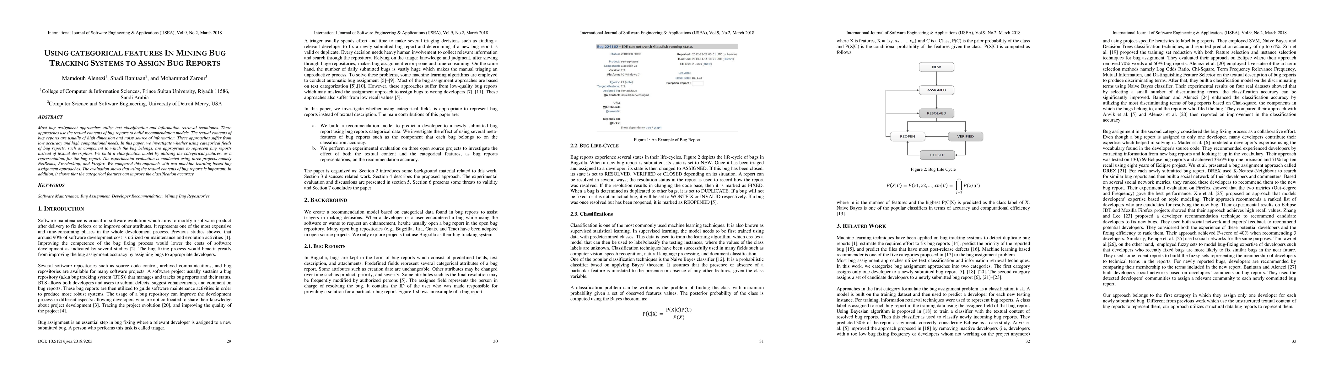 This paper explores using categorical features in bug tracking systems to assign bug reports, finding that while textual contents are crucial, categorical features like bug components can enhance classification accuracy. Experiments on NetBeans, Freedesktop, and Firefox show mixed results, indicating a potential complementary role for both textual and categorical data.