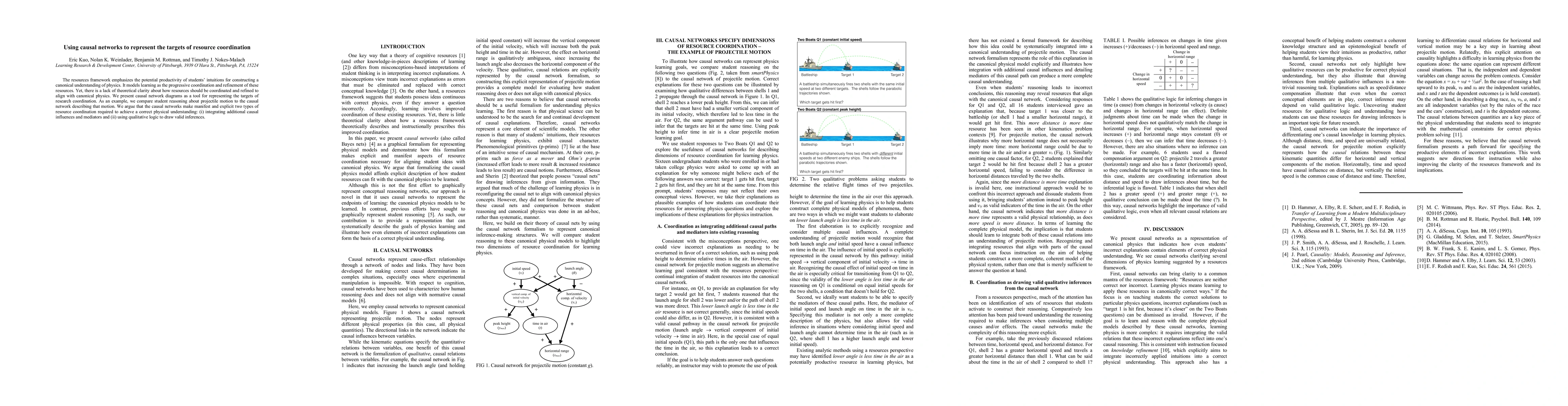 This paper proposes causal network diagrams to clarify how student intuitions can be coordinated and refined for a canonical understanding of physics. It illustrates this through student reasoning on projectile motion, highlighting two types of necessary resource coordination: integrating additional causal influences and using qualitative logic for valid inferences.