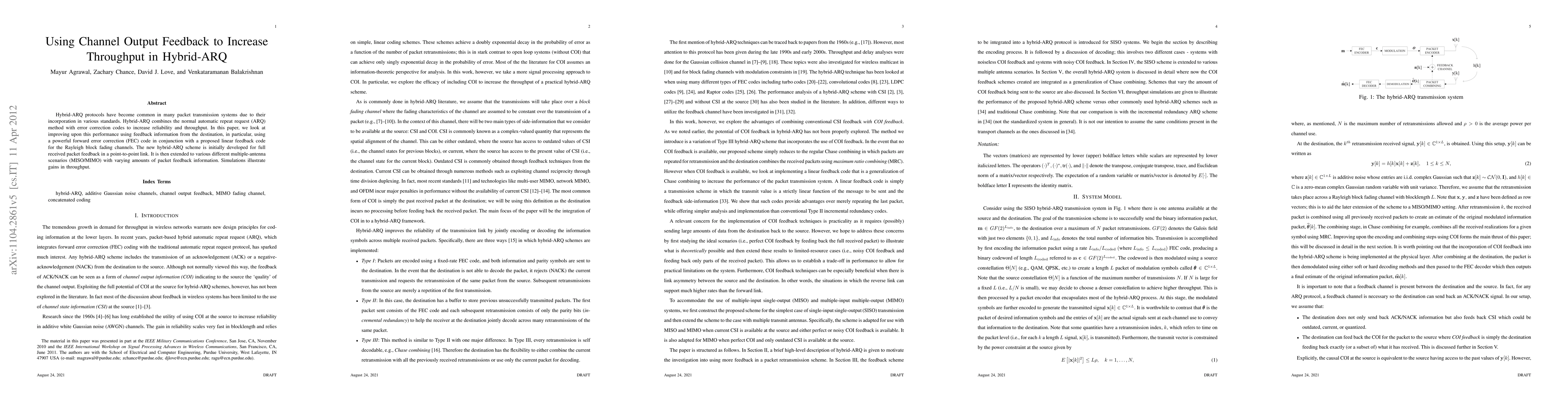 This paper proposes a new hybrid-ARQ scheme that uses channel output feedback and a forward error correction code to enhance throughput in Rayleigh block fading channels. The scheme is tested in both single-link and multiple-antenna scenarios, showing improved throughput through simulations.