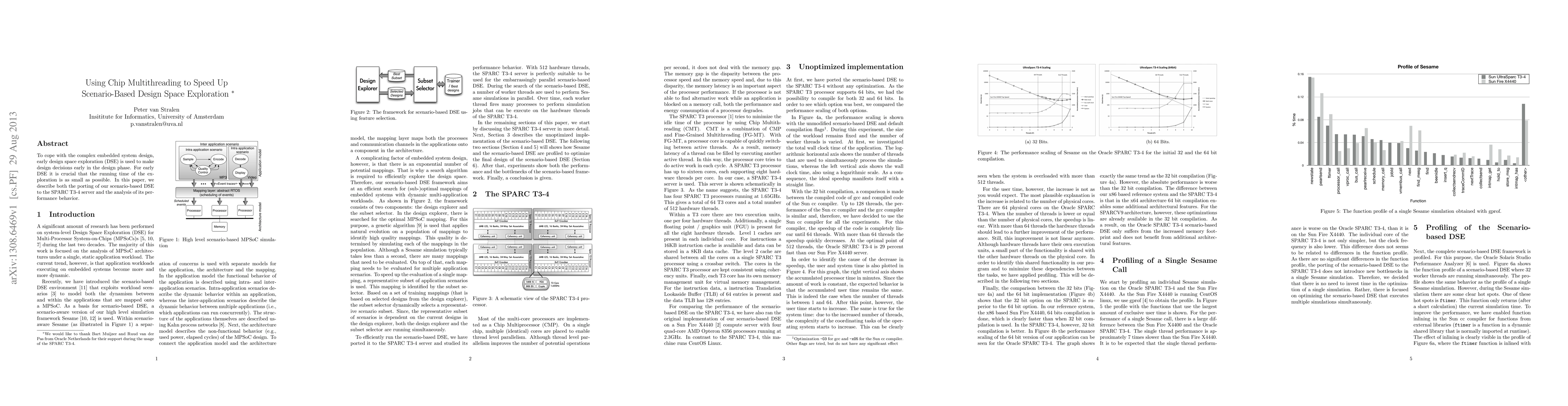 This paper explores using chip multithreading to speed up scenario-based design space exploration for embedded system design. It finds that porting the scenario-based DSE to the SPARC T3-4 server improves performance.
