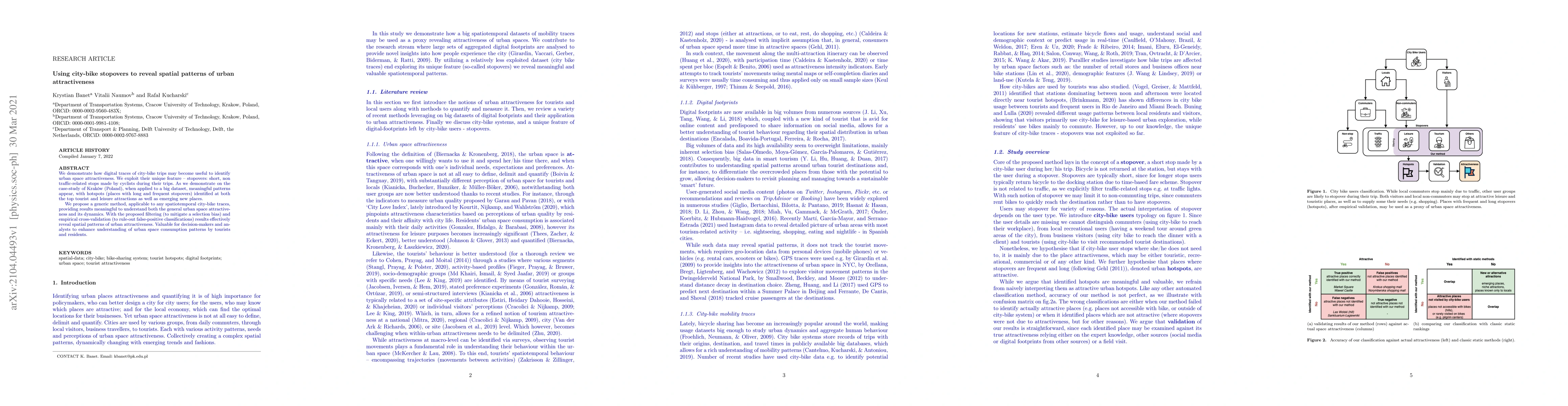 This paper proposes a method to analyze city-bike stopovers to identify urban space attractiveness, demonstrating meaningful patterns in Krakow, Poland. The approach filters out selection bias and validates results to reveal hotspots of both established and emerging attractions, offering valuable insights for urban planning.