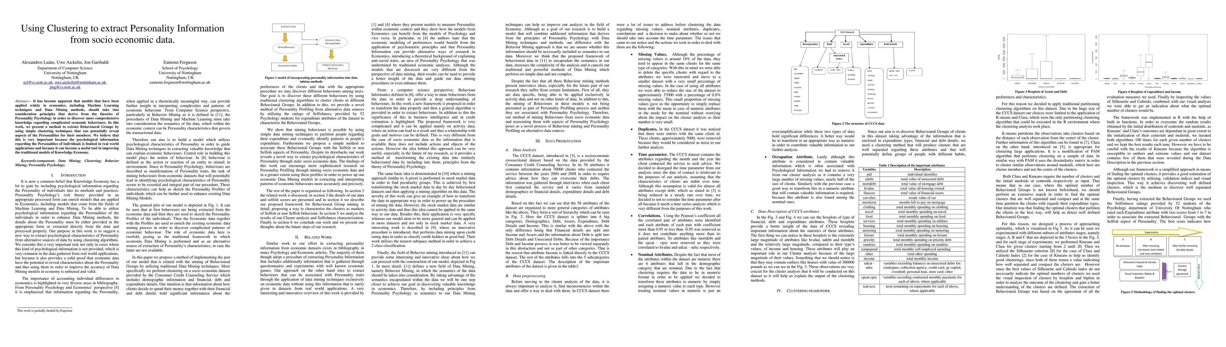 This paper proposes a method using clustering techniques to extract personality information from socio-economic data, aiming to enhance traditional economic models by incorporating insights from personality psychology. The approach seeks to uncover behavioral groups that may reveal personality traits, addressing the limited psychological data in real-world applications.