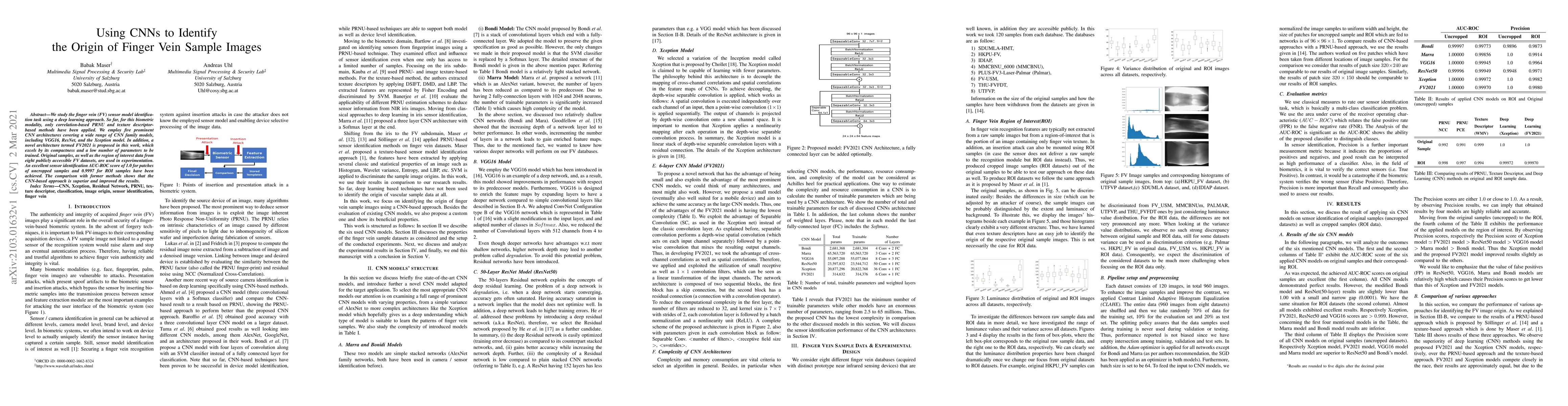 Researchers used CNNs to identify the origin of finger vein images, achieving high accuracy rates using a novel architecture called FV2021. Their method outperformed previous methods in sensor identification.