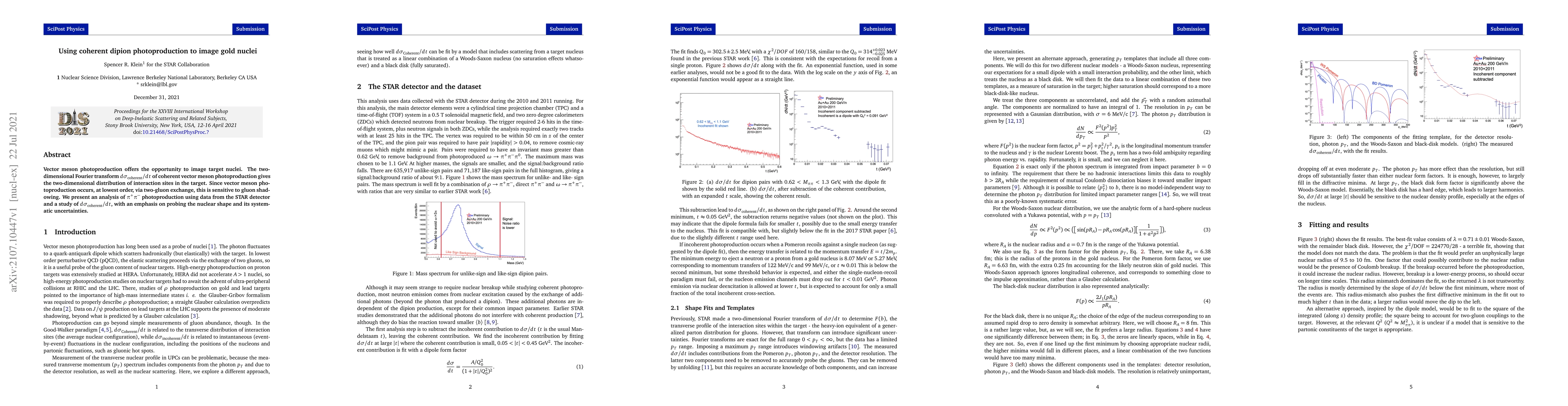 Vector meson photoproduction offers the opportunity to image target nuclei. The two-dimensional Fourier transform $d\sigma_{\rm coherent}/dt$ of coherent vector meson photoproduction gives the two-dimensional distribution of interaction sites in the target. Since vector meson photoproduction occurs, at lowest order, via two-gluon exchange, this is sensitive to gluon shadowing. We present an analysis of $\pi^+\pi^-$ photoproduction using data from the STAR detector and a study of $d\sigma_{\rm coherent}/dt$, with an emphasis on probing the nuclear shape and its systematic uncertainties.