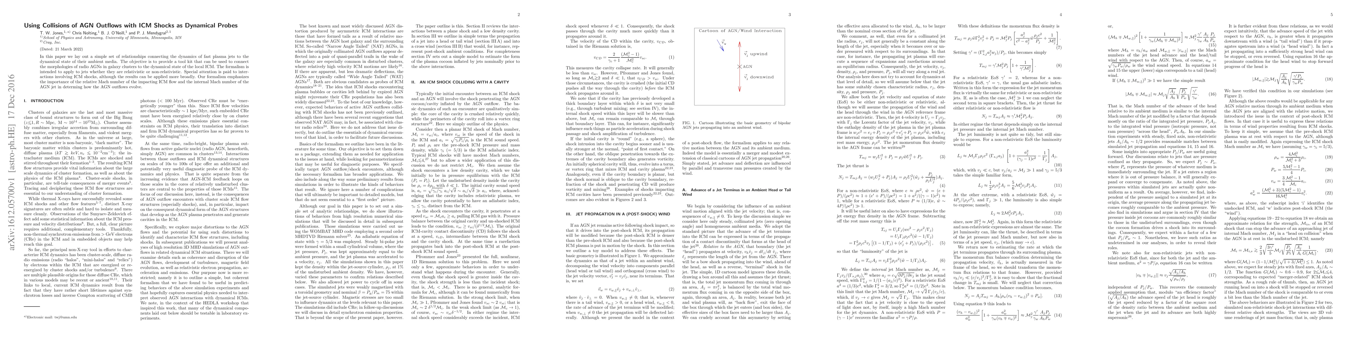 In this paper we lay out a simple set of relationships connecting the dynamics of fast plasma jets to the dynamical state of their ambient media. The objective is to provide a tool kit that can be used to connect the morphologies of radio AGNs in galaxy clusters to the dynamical state of the local ICM. The formalism is intended to apply to jets whether they are relativistic or non-relativistic. Special attention is paid to interactions involving ICM shocks, although the results can be applied more broadly. Our formalism emphasizes the importance of the relative Mach number of the impacting ICM flow and the internal Mach number of the AGN jet in determining how the AGN outflows evolve.