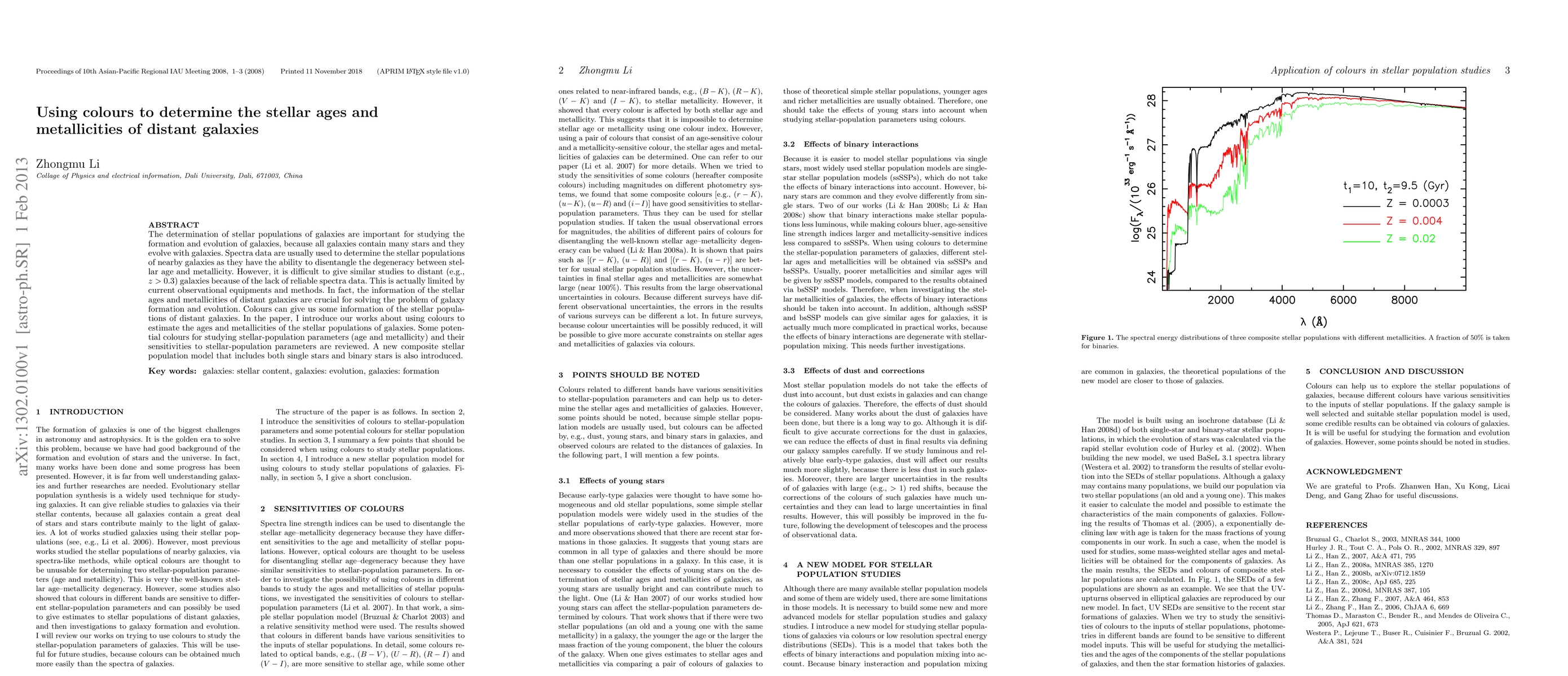 This paper explores the use of colours to estimate the stellar ages and metallicities of distant galaxies, where spectra data is insufficient. It reviews potential colours for studying stellar populations and introduces a new composite stellar population model that accounts for both single and binary stars.