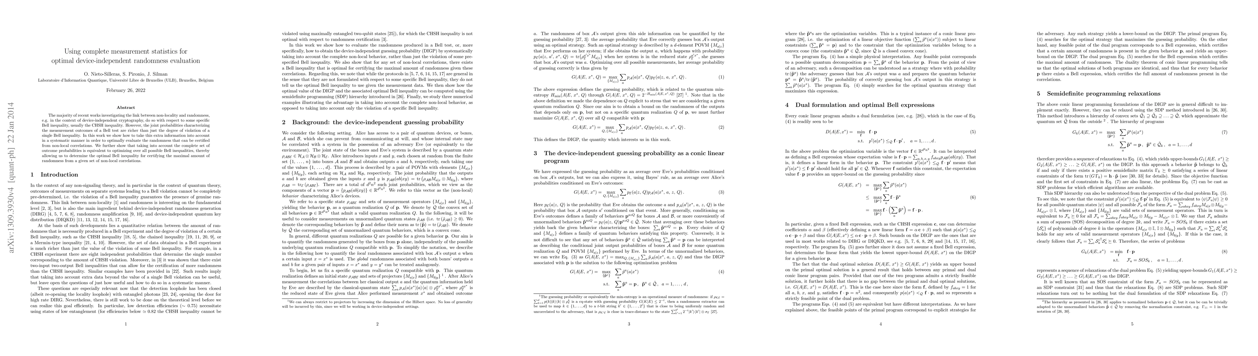 This paper proposes a method for optimally evaluating randomness from non-local correlations by using complete measurement statistics, rather than just the CHSH inequality. It demonstrates that considering all joint probabilities allows for determining the optimal Bell inequality for certifying maximal randomness.