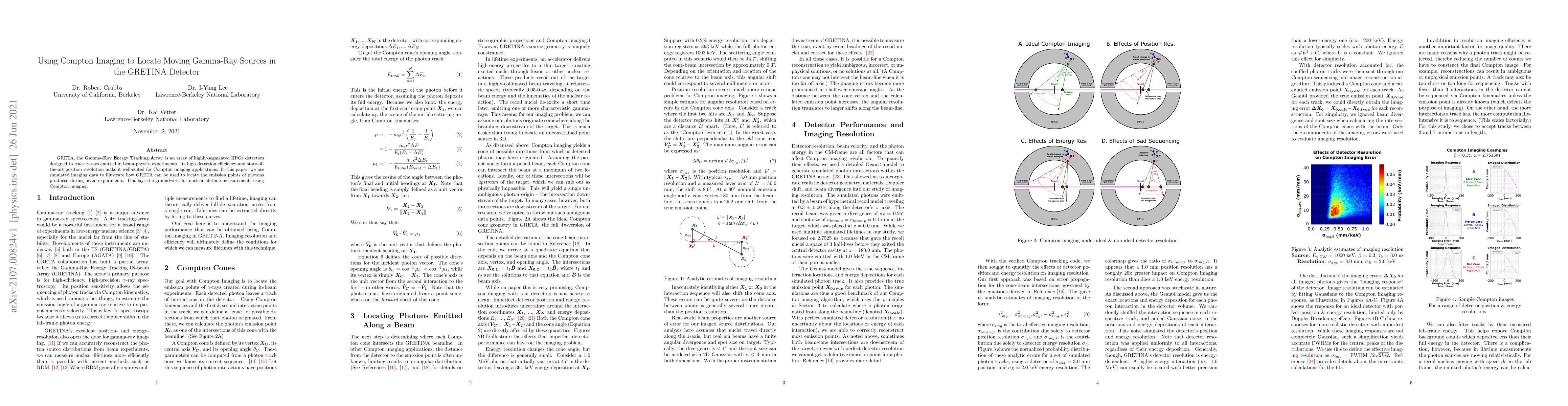 This paper demonstrates the application of GRETA, a high-efficiency gamma-ray detector, for Compton imaging to pinpoint the emission points of moving gamma-ray sources in beam experiments, establishing a method for nuclear lifetime measurements. Simulated data validates the technique's potential.