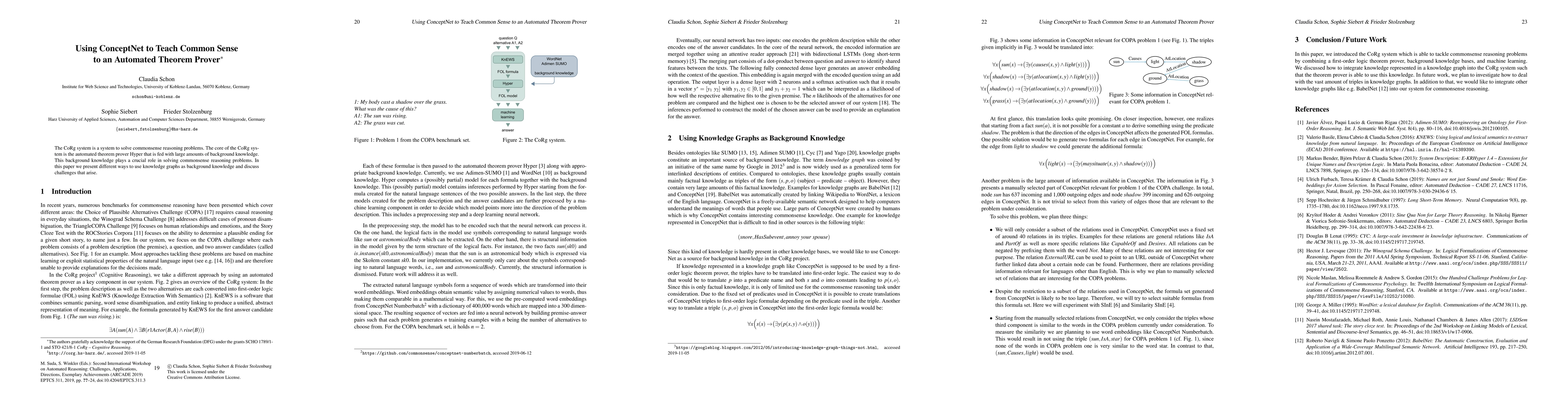 The CoRg system is a system to solve commonsense reasoning problems. The core of the CoRg system is the automated theorem prover Hyper that is fed with large amounts of background knowledge. This background knowledge plays a crucial role in solving commonsense reasoning problems. In this paper we present different ways to use knowledge graphs as background knowledge and discuss challenges that arise.