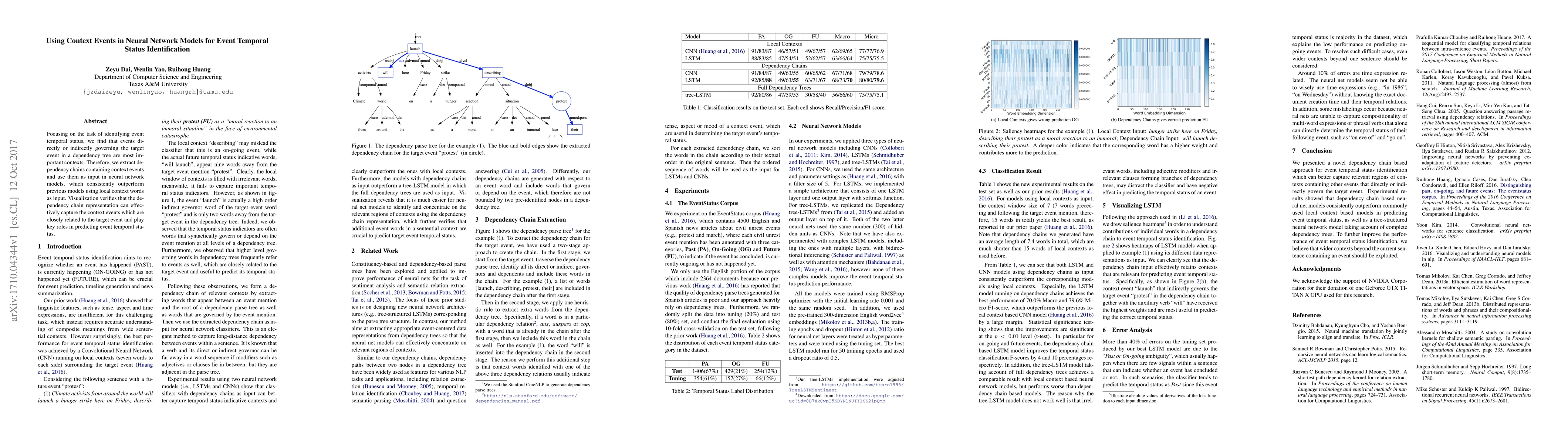 Focusing on the task of identifying event temporal status, we find that events directly or indirectly governing the target event in a dependency tree are most important contexts. Therefore, we extract dependency chains containing context events and use them as input in neural network models, which consistently outperform previous models using local context words as input. Visualization verifies that the dependency chain representation can effectively capture the context events which are closely related to the target event and play key roles in predicting event temporal status.