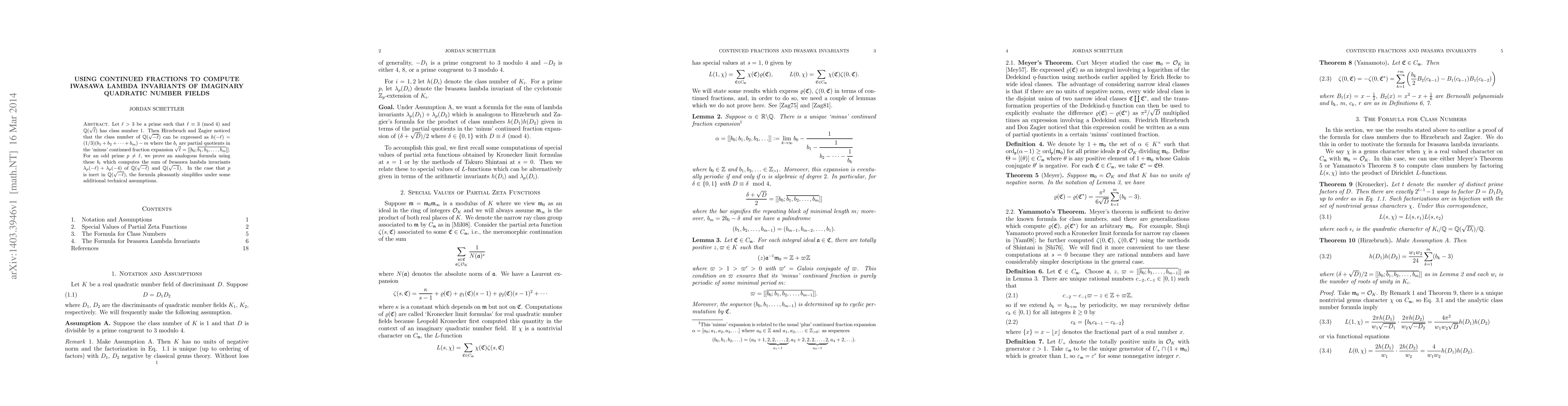 This paper establishes a connection between the continued fraction expansion of $\sqrt{\ell}$ and the class number of $\mathbb{Q}(\sqrt{-\ell})$ for primes $\ell \equiv 3 \pmod{4}$. It also provides a formula for computing the sum of Iwasawa lambda invariants of $\mathbb{Q}(\sqrt{-\ell})$ and $\mathbb{Q}(\sqrt{-1})$ using the partial quotients from the continued fraction.