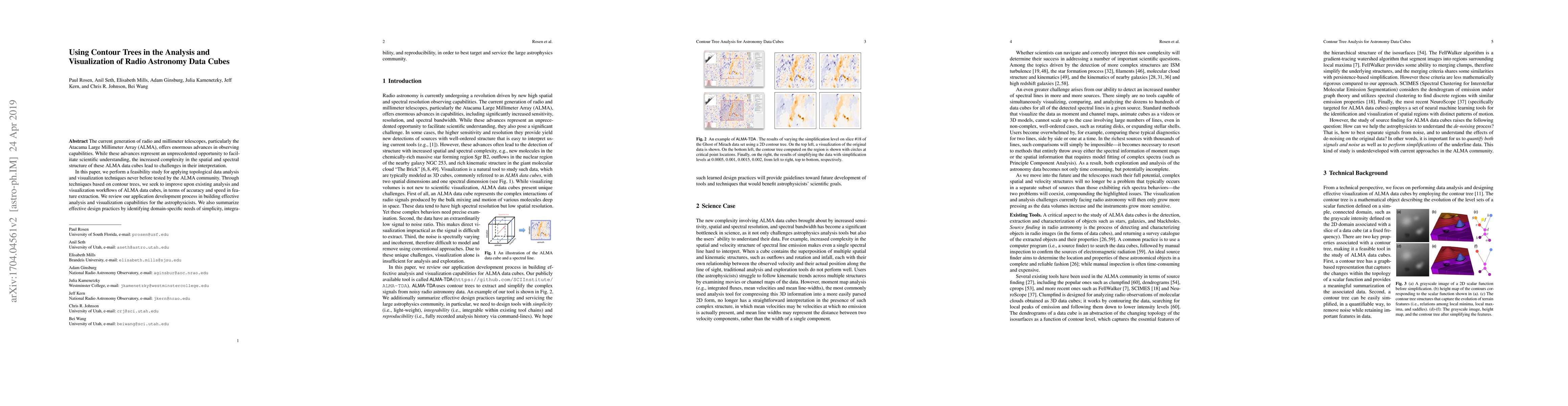 The current generation of radio and millimeter telescopes, particularly the Atacama Large Millimeter Array (ALMA), offers enormous advances in observing capabilities. While these advances represent an unprecedented opportunity to facilitate scientific understanding, the increased complexity in the spatial and spectral structure of these ALMA data cubes lead to challenges in their interpretation. In this paper, we perform a feasibility study for applying topological data analysis and visualization techniques never before tested by the ALMA community. Through techniques based on contour trees, we seek to improve upon existing analysis and visualization workflows of ALMA data cubes, in terms of accuracy and speed in feature extraction. We review our application development process in building effective analysis and visualization capabilities for the astrophysicists. We also summarize effective design practices by identifying domain-specific needs of simplicity, integrability, and reproducibility, in order to best target and service the large astrophysics community.
