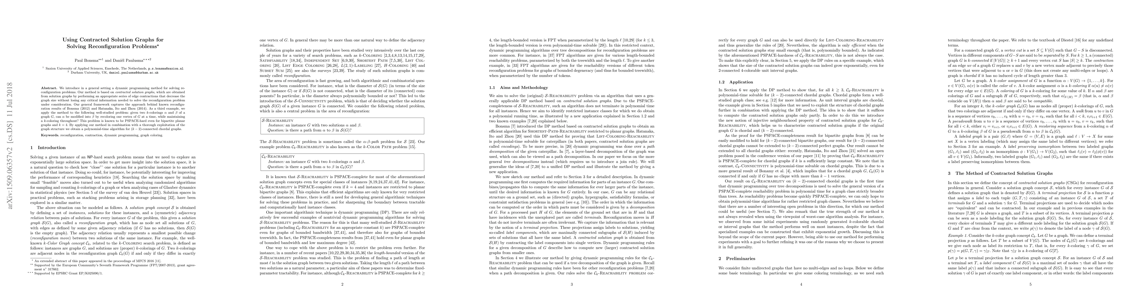 Researchers developed a dynamic programming method using contracted solution graphs to solve reconfiguration problems efficiently, achieving polynomial time complexity for specific graph types.