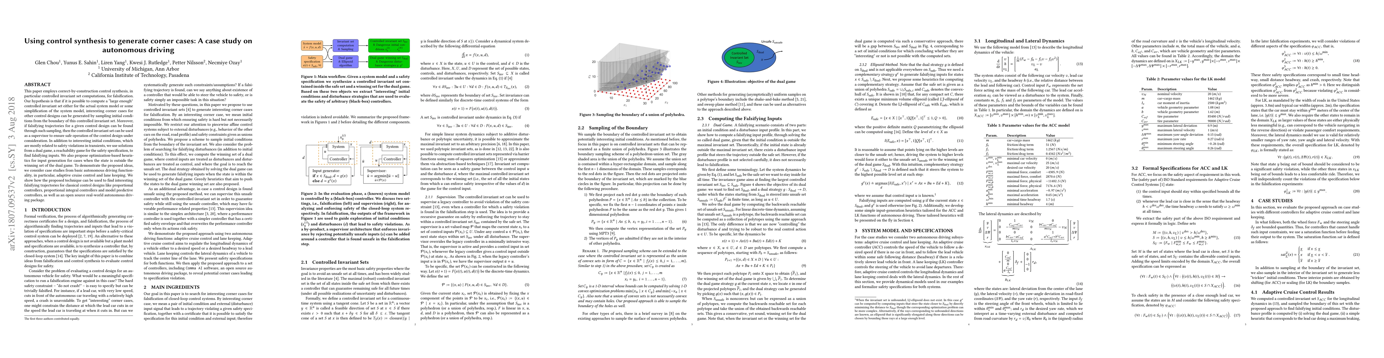 This paper employs correct-by-construction control synthesis, in particular controlled invariant set computations, for falsification. Our hypothesis is that if it is possible to compute a "large enough" controlled invariant set either for the actual system model or some simplification of the system model, interesting corner cases for other control designs can be generated by sampling initial conditions from the boundary of this controlled invariant set. Moreover, if falsifying trajectories for a given control design can be found through such sampling, then the controlled invariant set can be used as a supervisor to ensure safe operation of the control design under consideration. In addition to interesting initial conditions, which are mostly related to safety violations in transients, we use solutions from a dual game, a reachability game for the safety specification, to find falsifying inputs. We also propose optimization-based heuristics for input generation for cases when the state is outside the winning set of the dual game. To demonstrate the proposed ideas, we consider case studies from basic autonomous driving functionality, in particular, adaptive cruise control and lane keeping. We show how the proposed technique can be used to find interesting falsifying trajectories for classical control designs like proportional controllers, proportional integral controllers and model predictive controllers, as well as an open source real-world autonomous driving package.