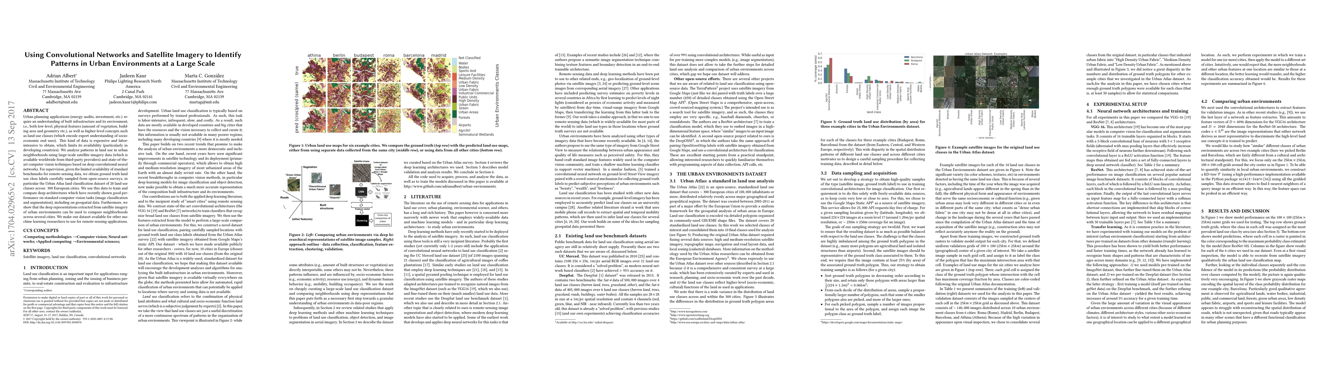 This paper uses convolutional networks and satellite imagery to identify urban land use patterns, leveraging deep learning to analyze large-scale geospatial data. The authors train models on a dataset derived from open-source surveys and make it publicly available for further research in remote sensing.