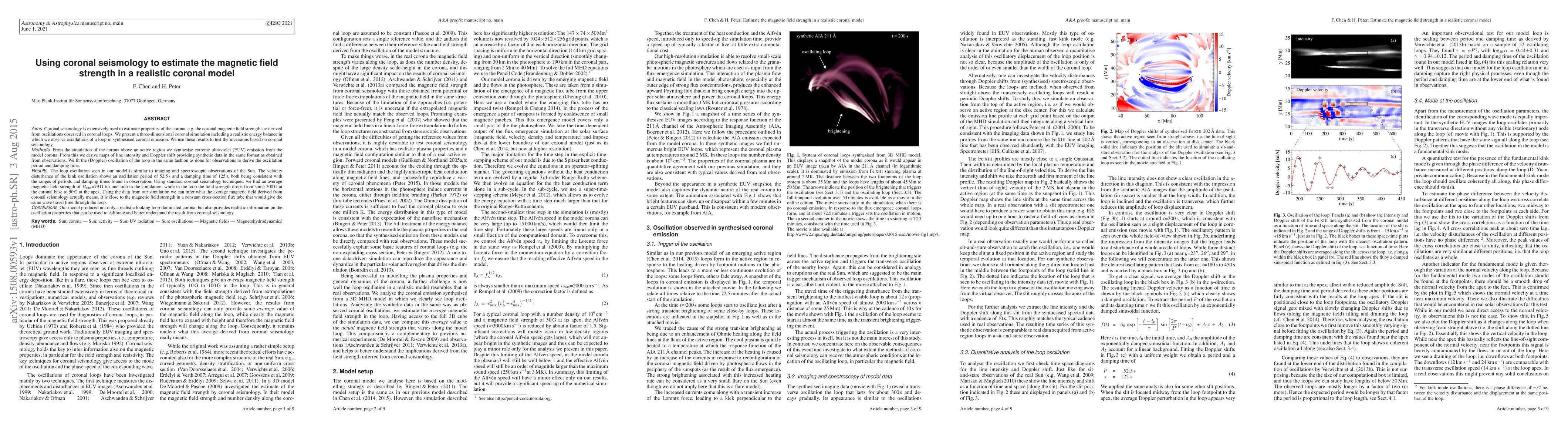 This paper uses coronal seismology to estimate magnetic field strength in a realistic coronal model by simulating coronal loop oscillations. The study finds an average magnetic field strength of 79G, consistent with observational data, and provides insights into the interpretation of seismology-derived magnetic fields.