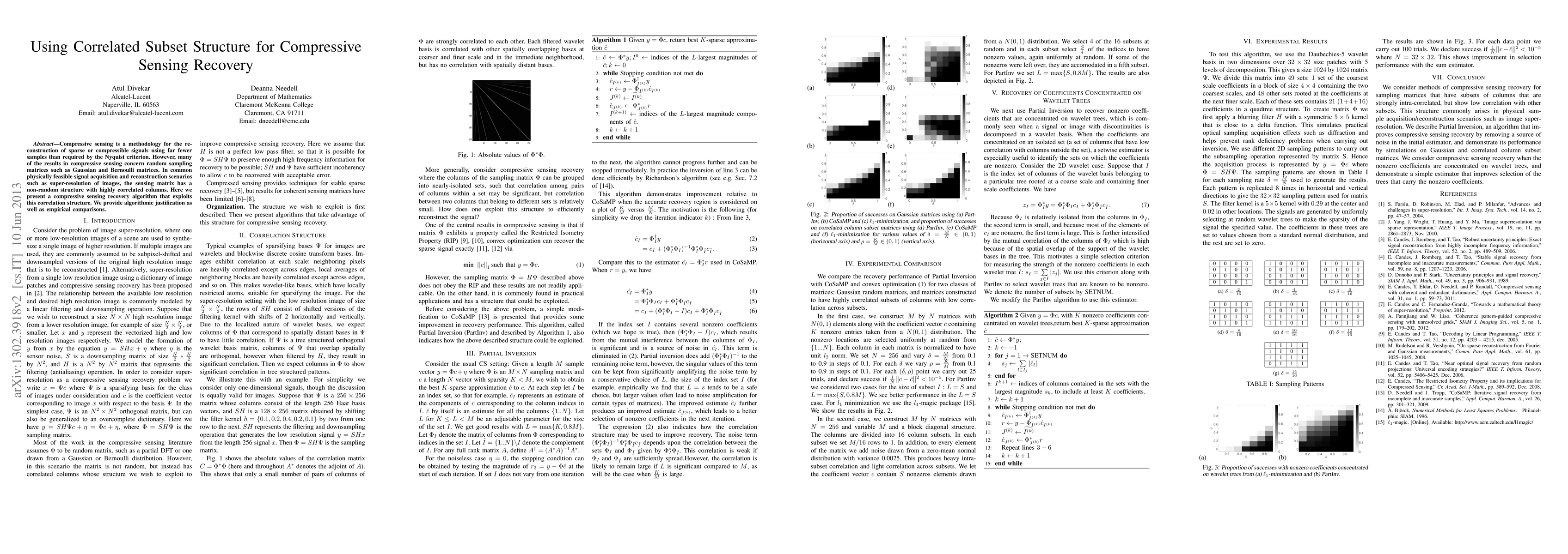 This paper presents a compressive sensing recovery algorithm that leverages correlated subset structures in the sensing matrix to reconstruct sparse signals with fewer samples than traditional methods. The proposed algorithm is justified both theoretically and empirically, demonstrating improved performance in scenarios like image super-resolution.