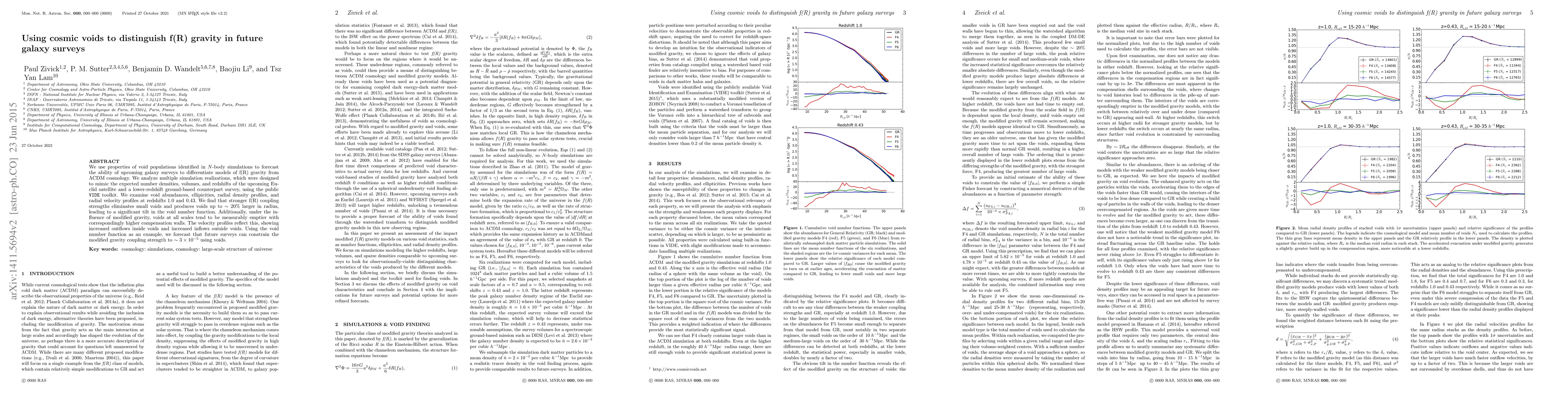 This paper forecasts the ability of future galaxy surveys to distinguish between f(R) gravity and ΛCDM cosmology using cosmic voids. It finds that stronger f(R) gravity leads to larger voids and empties them more, with higher compensation walls, and predicts that surveys can constrain the modified gravity coupling strength to $\sim 3 \times 10^{-5}$ using void properties.
