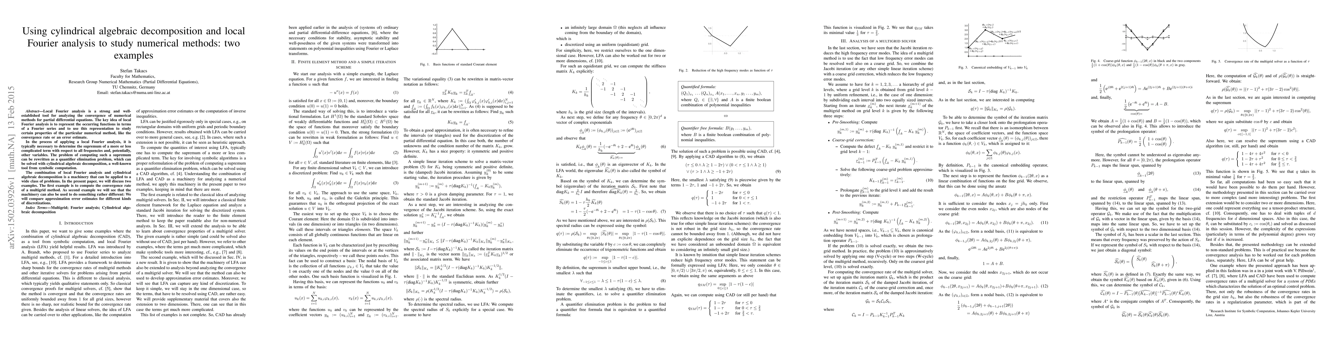 This paper combines local Fourier analysis and cylindrical algebraic decomposition to analyze numerical methods for partial differential equations. It demonstrates the approach through two examples: computing the convergence rate of a multigrid method and comparing approximation error estimates for different discretizations.