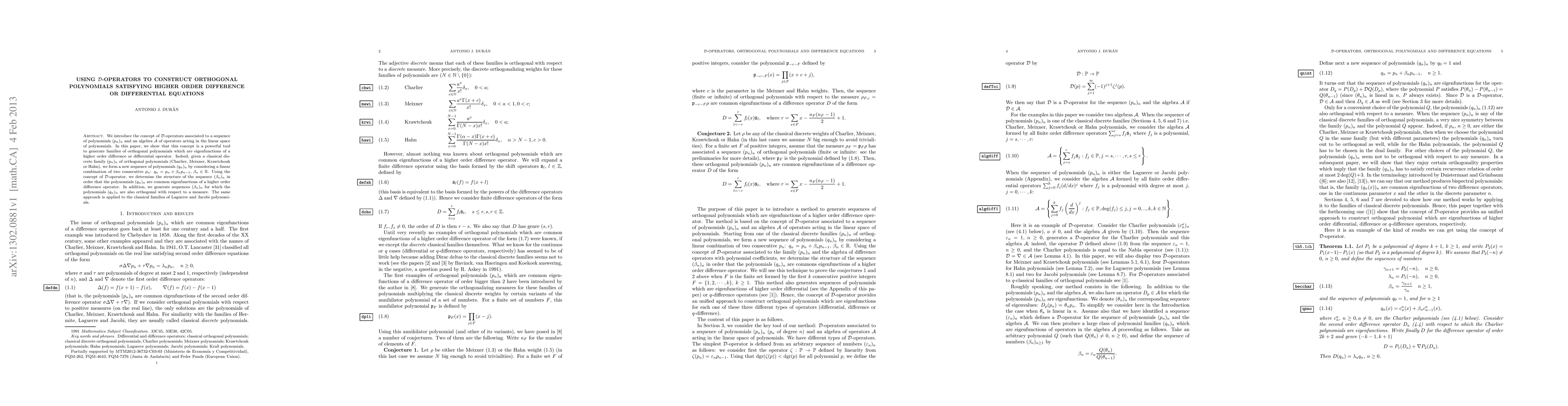 This paper introduces $\D$-operators to construct orthogonal polynomials that satisfy higher order difference or differential equations. It demonstrates how these operators can generate new sequences of polynomials that are eigenfunctions of such operators and remain orthogonal under specific conditions.