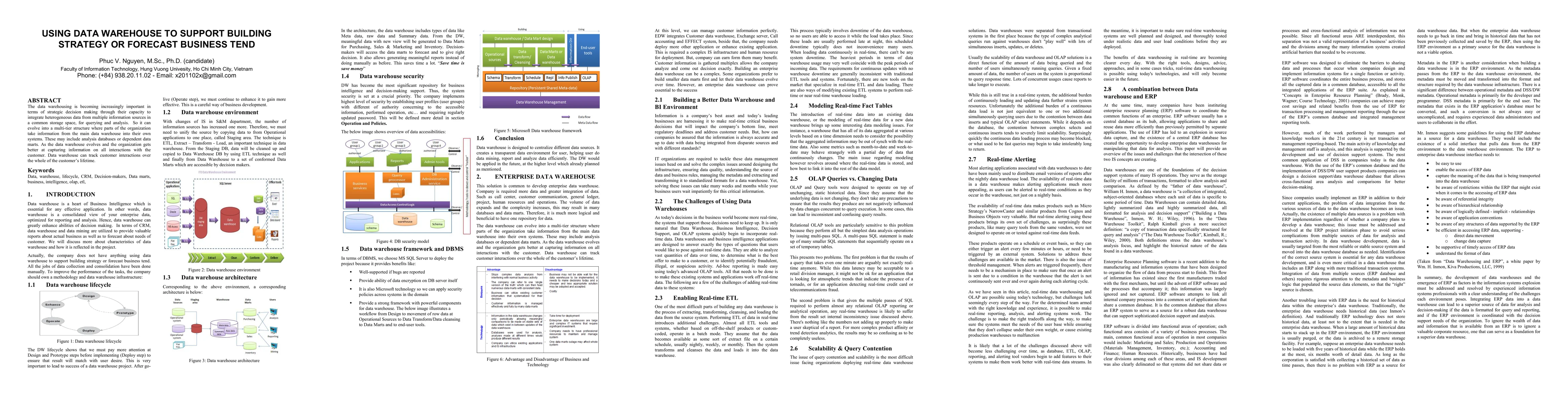 The data warehousing is becoming increasingly important in terms of strategic decision making through their capacity to integrate heterogeneous data from multiple information sources in a common storage space, for querying and analysis. So it can evolve into a multi-tier structure where parts of the organization take information from the main data warehouse into their own systems. These may include analysis databases or dependent data marts. As the data warehouse evolves and the organization gets better at capturing information on all interactions with the customer. Data warehouse can track customer interactions over the whole of the customer's lifetime.
