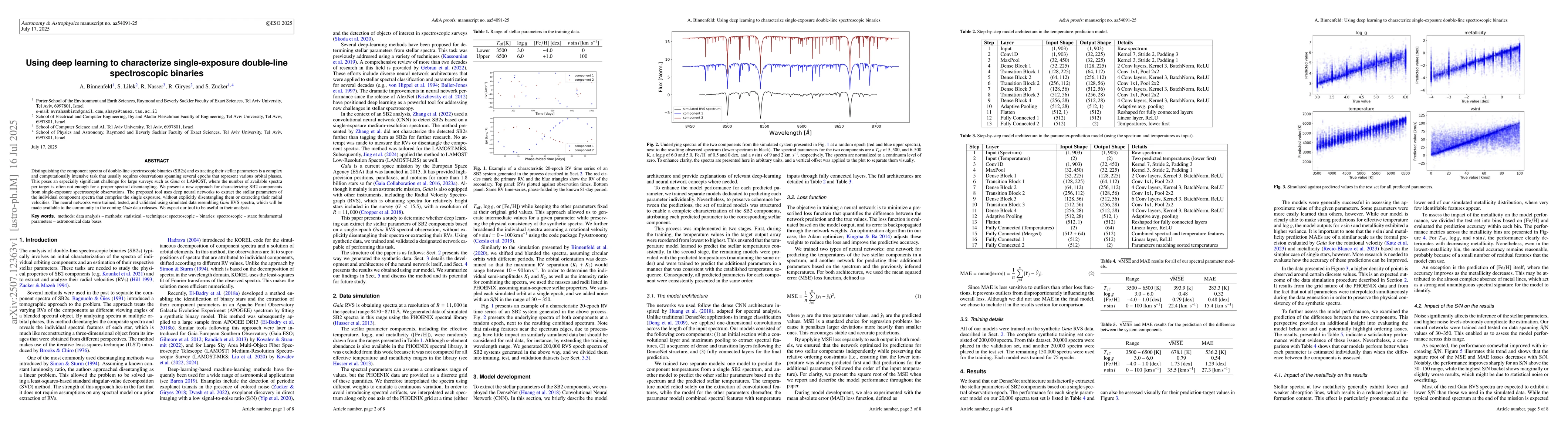 Distinguishing the component spectra of double-line spectroscopic binaries (SB2s) and extracting their stellar parameters is a complex and computationally intensive task that usually requires observations spanning several epochs that represent various orbital phases. This poses an especially significant challenge for large surveys such as Gaia or LAMOST, where the number of available spectra per target is often not enough for a proper spectral disentangling. We present a new approach for characterizing SB2 components from single-exposure spectroscopic observations. The proposed tool uses deep neural networks to extract the stellar parameters of the individual component spectra that comprise the single exposure, without explicitly disentangling them or extracting their radial velocities. The neural networks were trained, tested, and validated using simulated data resembling Gaia RVS spectra, which will be made available to the community in the coming Gaia data releases. We expect our tool to be useful in their analysis.