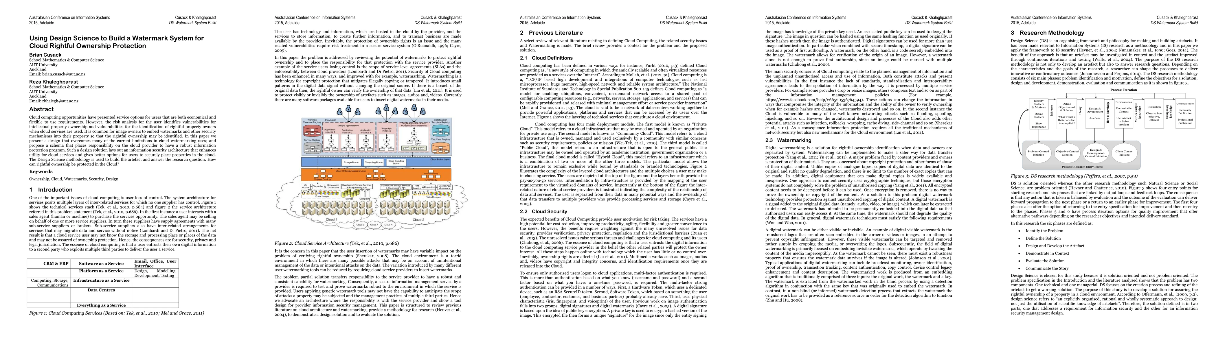 This paper employs Design Science to develop a robust watermark system for protecting rightful ownership in cloud services, addressing vulnerabilities in current cloud watermarking methods. The proposed schema shifts responsibility to cloud providers for a strong information protection program, enhancing security and utility for cloud-based property storage.