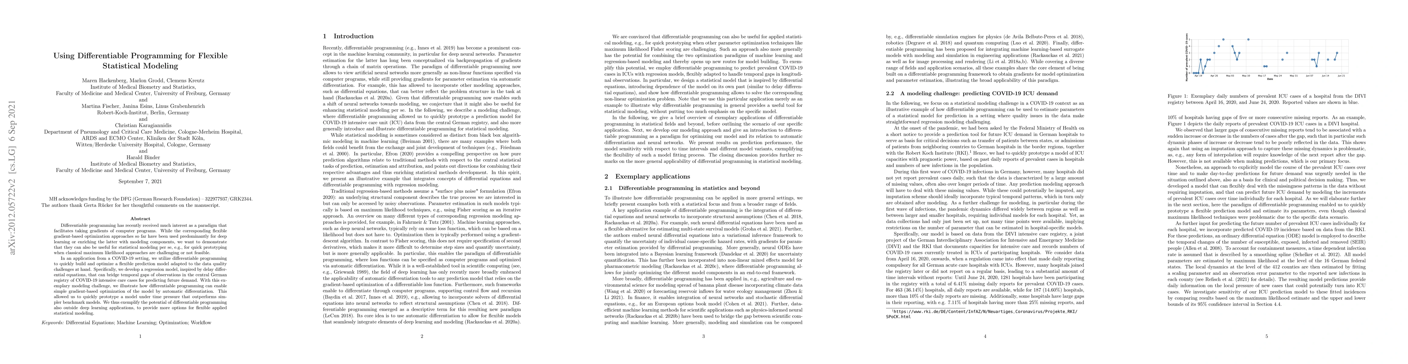 This paper demonstrates the utility of differentiable programming for flexible statistical modeling, particularly in prototyping complex models under time constraints. It showcases a COVID-19 application where a regression model inspired by delay differential equations is optimized using automatic differentiation, outperforming simpler benchmarks.
