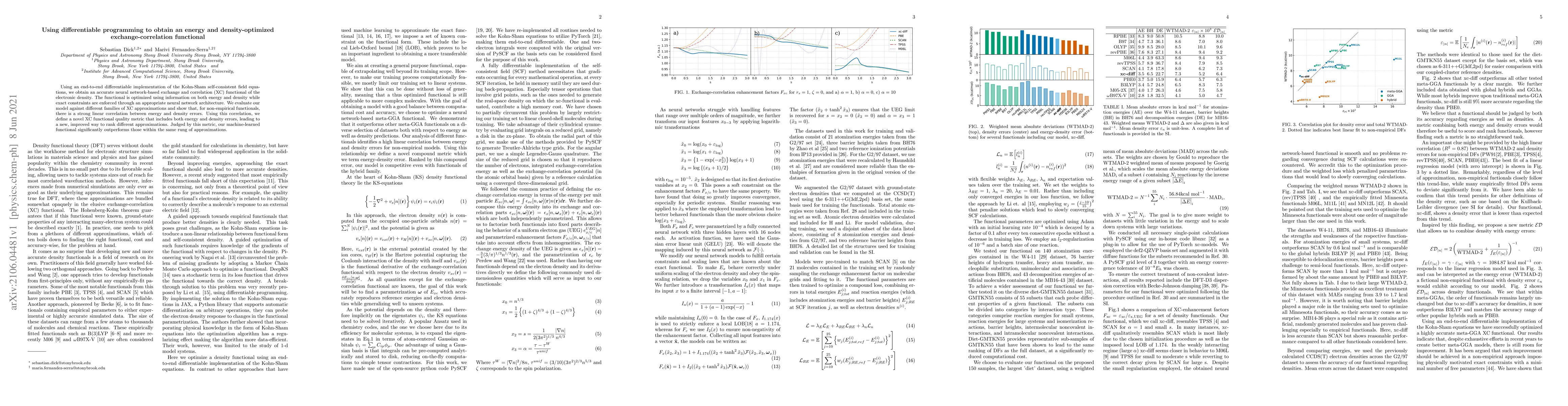This paper develops an optimized neural network-based exchange-correlation functional using differentiable programming and shows it outperforms traditional approximations by incorporating both energy and density errors into a new quality metric.