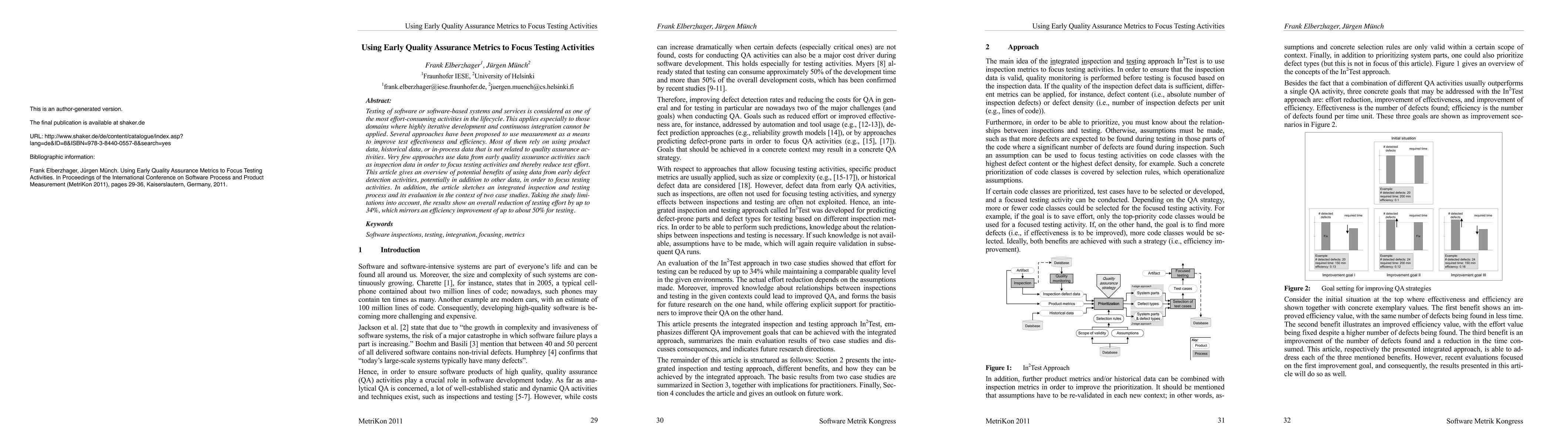 This paper explores leveraging early quality assurance metrics, specifically inspection data, to enhance test effectiveness and reduce testing effort. The study demonstrates an integrated inspection and testing process, showing a potential reduction in testing effort by up to 34%, translating to an efficiency improvement of up to 50%.