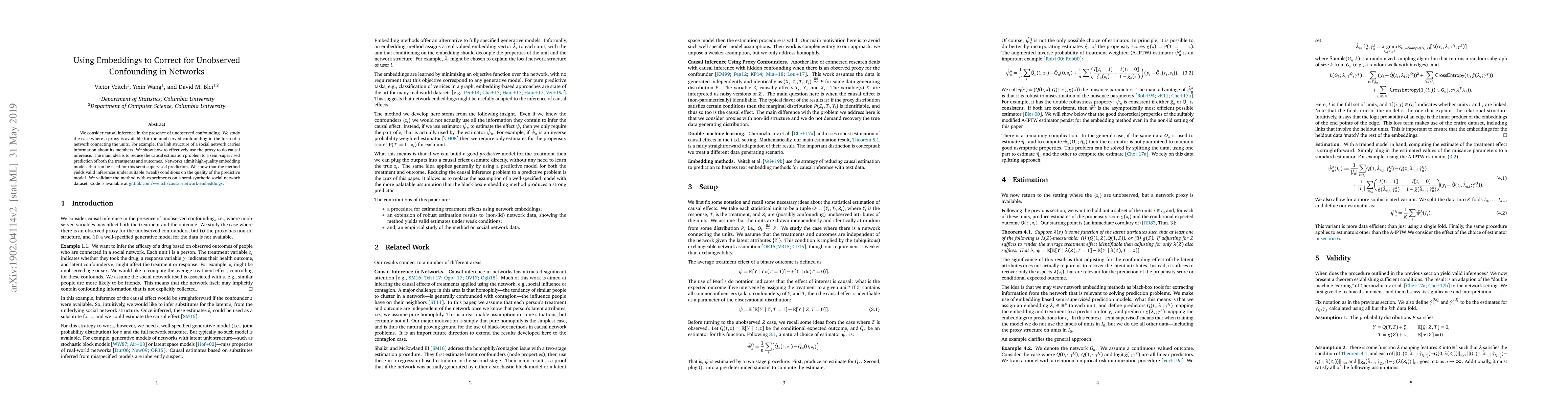This paper proposes a method to correct for unobserved confounding in causal inference using network embeddings. It leverages network structure as a proxy for unobserved confounders and employs high-quality embedding models for semi-supervised prediction of treatments and outcomes, yielding valid inferences under certain conditions. Experiments on a semi-synthetic social network dataset validate the approach.