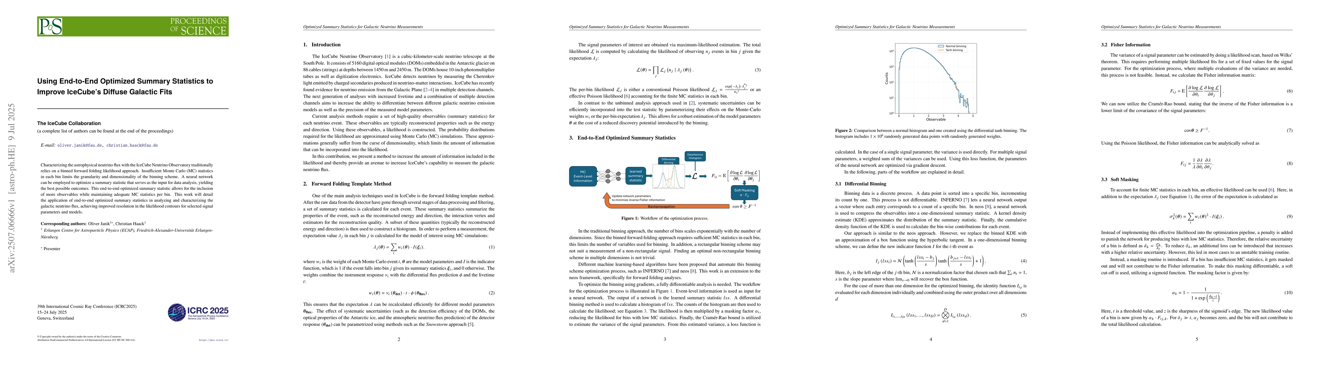 Characterizing the astrophysical neutrino flux with the IceCube Neutrino Observatory traditionally relies on a binned forward-folding likelihood approach. Insufficient Monte Carlo (MC) statistics in each bin limits the granularity and dimensionality of the binning scheme. A neural network can be employed to optimize a summary statistic that serves as the input for data analysis, yielding the best possible outcomes. This end-to-end optimized summary statistic allows for the inclusion of more observables while maintaining adequate MC statistics per bin. This work will detail the application of end-to-end optimized summary statistics in analyzing and characterizing the galactic neutrino flux, achieving improved resolution in the likelihood contours for selected signal parameters and models.
