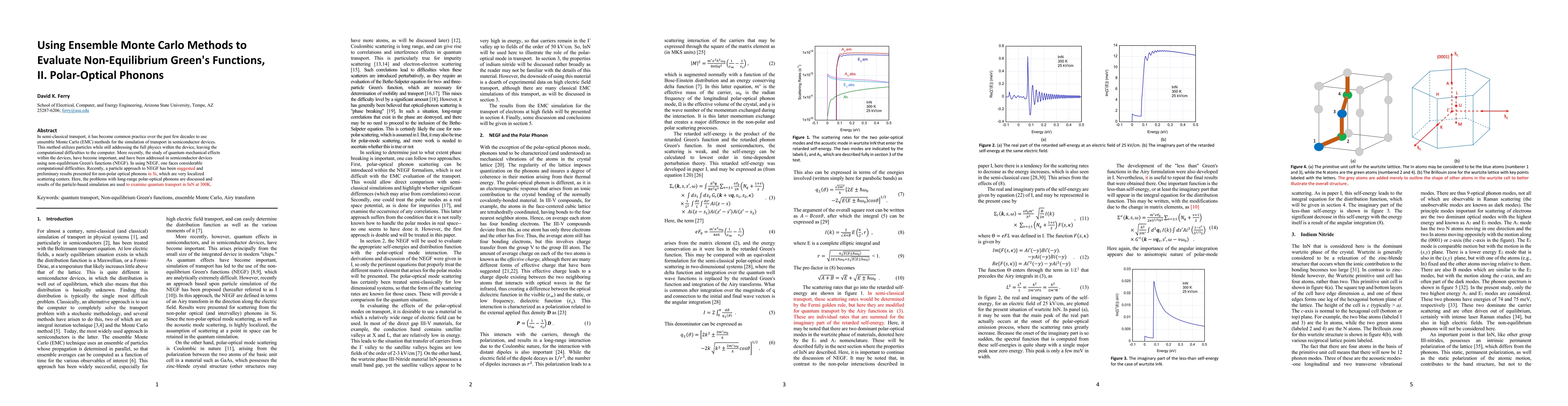 This paper explores the application of ensemble Monte Carlo methods to evaluate non-equilibrium Green's functions for simulating quantum mechanical effects in semiconductor devices, focusing on the computational challenges posed by long-range polar-optical phonons and presenting preliminary results from a particle-based simulation approach.