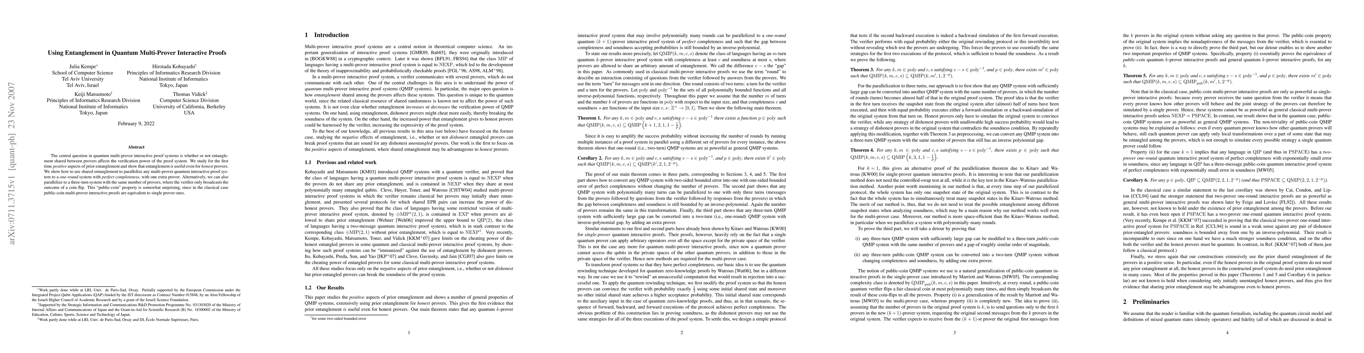 The central question in quantum multi-prover interactive proof systems is whether or not entanglement shared between provers affects the verification power of the proof system. We study for the first time positive aspects of prior entanglement and show that entanglement is useful even for honest provers. We show how to use shared entanglement to parallelize any multi-prover quantum interactive proof system to a one-round system with perfect completeness, with one extra prover. Alternatively, we can also parallelize to a three-turn system with the same number of provers, where the verifier only broadcasts the outcome of a coin flip. This "public-coin" property is somewhat surprising, since in the classical case public-coin multi-prover interactive proofs are equivalent to single prover ones.