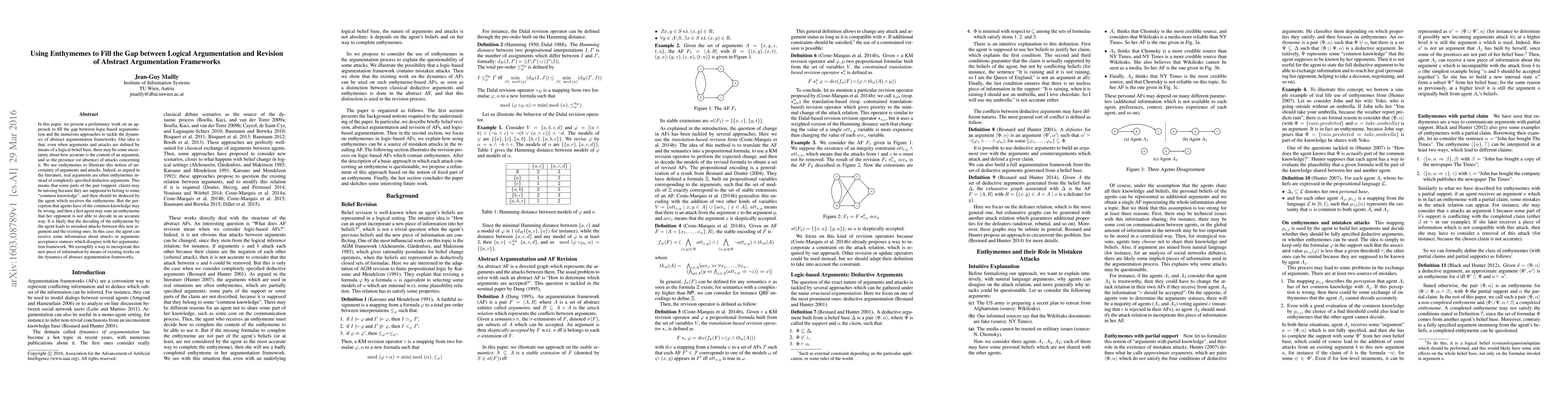 This paper proposes using enthymemes to address uncertainties in logical argumentation, illustrating how incomplete arguments can lead to mistaken attacks. It aims to bridge logic-based argumentation with dynamic abstract argumentation frameworks by incorporating feedback on argument acceptance statuses to revise the framework.