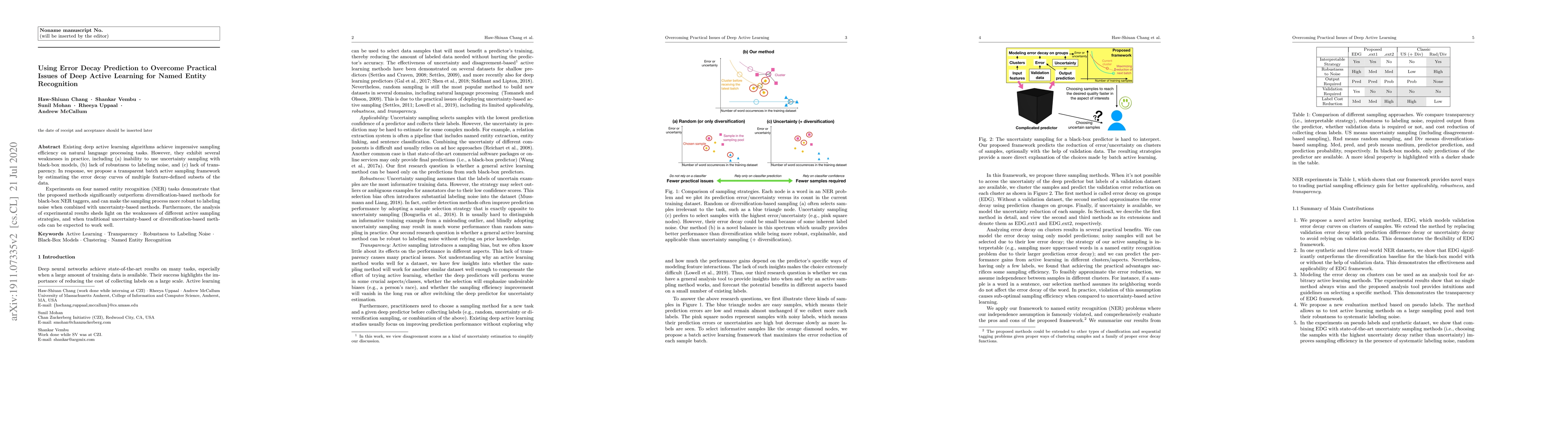 This paper proposes a transparent batch active sampling framework to address practical issues in deep active learning for named entity recognition (NER). The method estimates error decay curves to improve sampling efficiency, robustness to labeling noise, and transparency, outperforming diversification-based methods for black-box NER taggers.