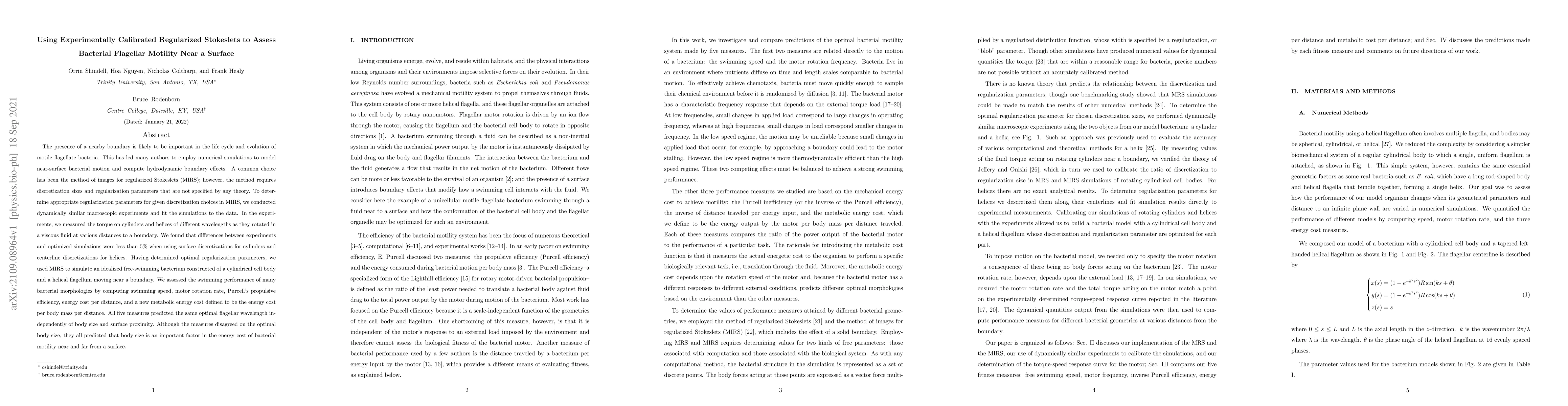 Researchers used experimental data to optimize a numerical model for simulating bacterial flagellar motility near surfaces, finding that optimal flagellar wavelength reduces energy cost regardless of body size or surface proximity.