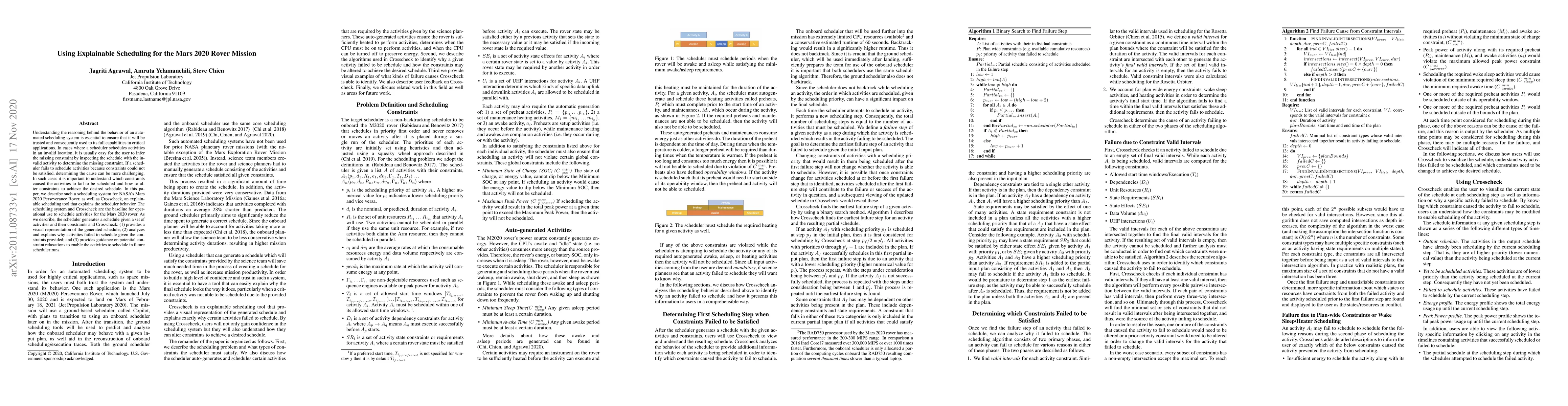 Understanding the reasoning behind the behavior of an automated scheduling system is essential to ensure that it will be trusted and consequently used to its full capabilities in critical applications. In cases where a scheduler schedules activities in an invalid location, it is usually easy for the user to infer the missing constraint by inspecting the schedule with the invalid activity to determine the missing constraint. If a scheduler fails to schedule activities because constraints could not be satisfied, determining the cause can be more challenging. In such cases it is important to understand which constraints caused the activities to fail to be scheduled and how to alter constraints to achieve the desired schedule. In this paper, we describe such a scheduling system for NASA's Mars 2020 Perseverance Rover, as well as Crosscheck, an explainable scheduling tool that explains the scheduler behavior. The scheduling system and Crosscheck are the baseline for operational use to schedule activities for the Mars 2020 rover. As we describe, the scheduler generates a schedule given a set of activities and their constraints and Crosscheck: (1) provides a visual representation of the generated schedule; (2) analyzes and explains why activities failed to schedule given the constraints provided; and (3) provides guidance on potential constraint relaxations to enable the activities to schedule in future scheduler runs.