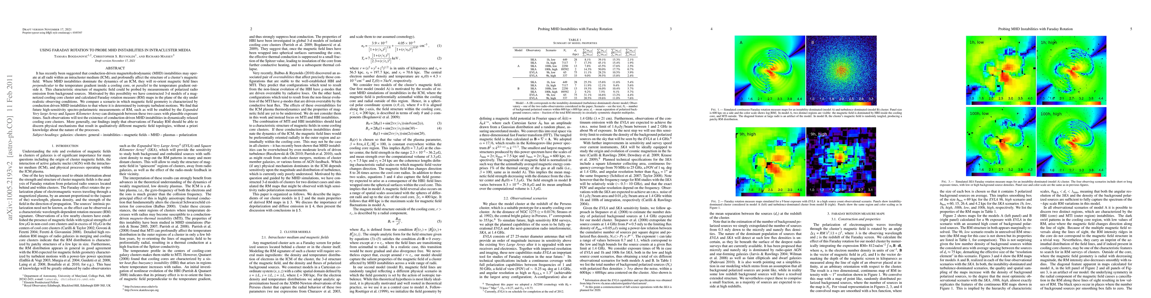 This paper explores the use of Faraday rotation to investigate magnetohydrodynamic (MHD) instabilities in intracluster media, suggesting that future high-sensitivity measurements can distinguish between magnetic field geometries shaped by conduction-driven MHD instabilities versus isotropic turbulence. Such observations will test the presence of MHD instabilities in cooling core clusters.